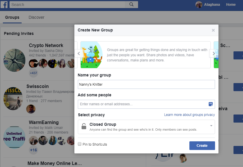 The point is, you want to pick something that you good at and make a group based on that information. I just a created new group. where I would be talking about Nanny's Knitter