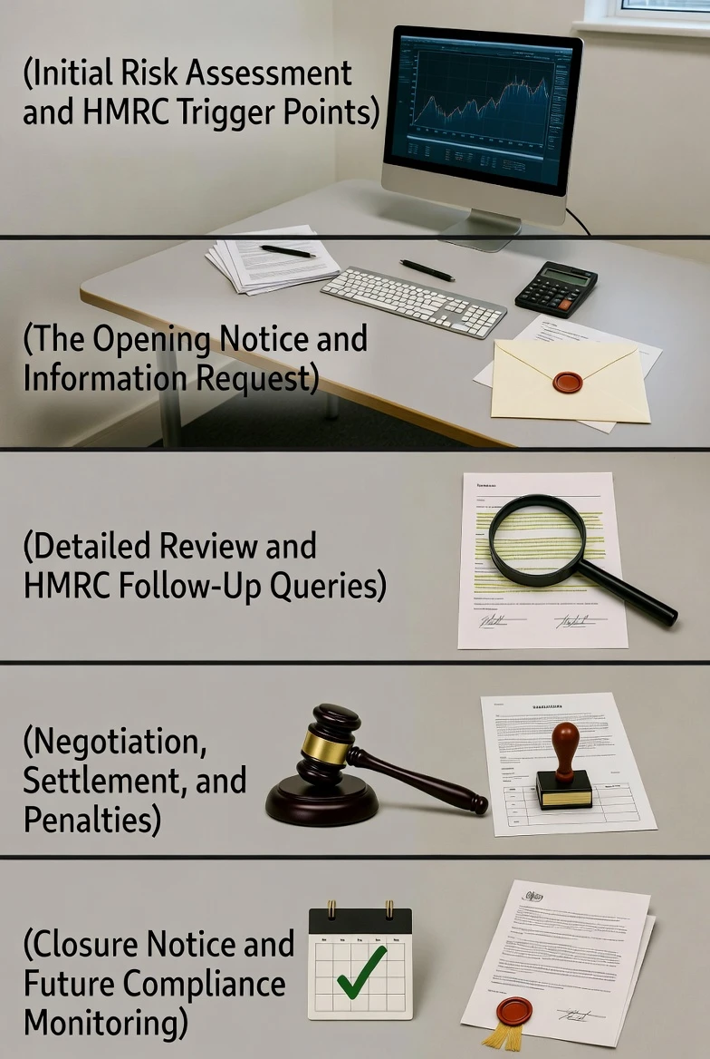 This is where the investigation becomes visible. HMRC sends an official opening letter—either under Section 9A (income tax), Schedule 36 (information powers), or Corporation Tax Act provisions for companies.