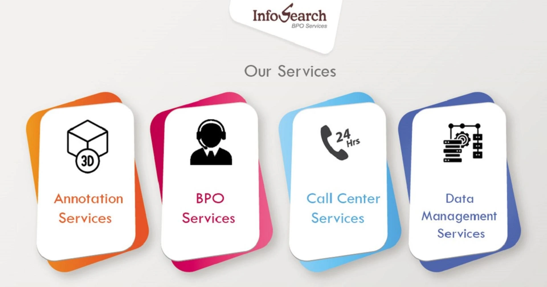 Infosearch is a global outsourcing company specialising in various annotation, bpo, call centre and data services. Website: https://www.infosearchbpo.com