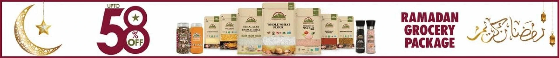 Ramadan Grocery Package 2022 includes items such as basmati rice, dates (khajoor), pulses (Dalen), Salt, Basen, and Chakki Atta (Flour), and all other necessary grocery products.