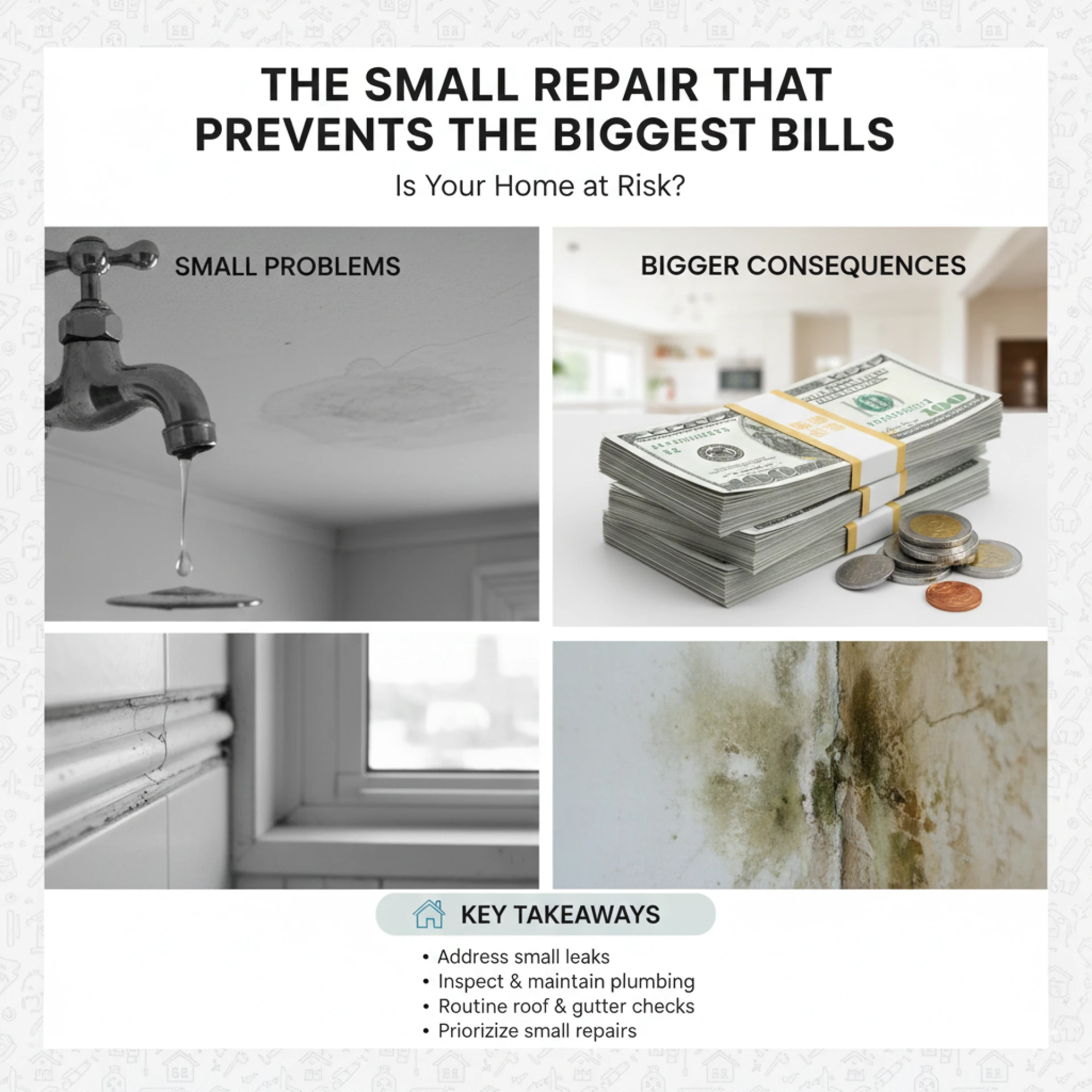 Neglecting small repairs can leave a home at risk of larger issues and costly bills. Minor problems like leaky faucets or cracked caulking might seem