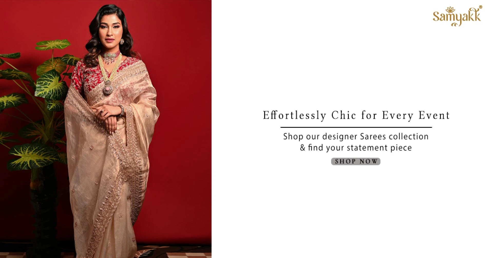 Explore timeless sarees for every occasion. Discover Kanchipuram, Banarasi, and designer styles. Shop online at Samyakk for elegance and tradition.