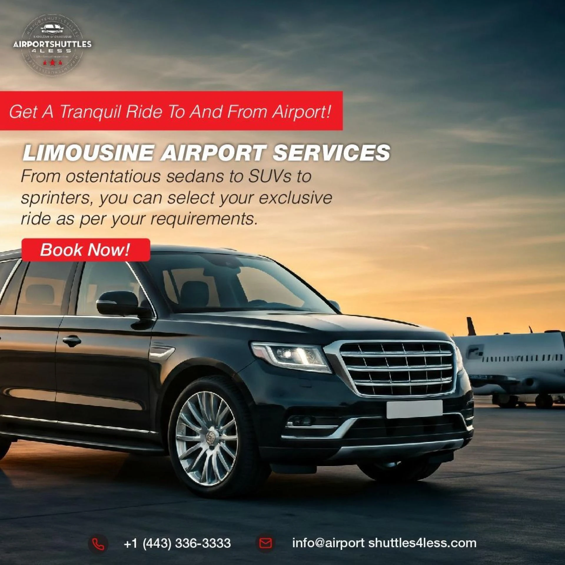 Book your ride now by calling us at (443) 336-3333 or reserve it online. Enjoy stress-free airport transfers!