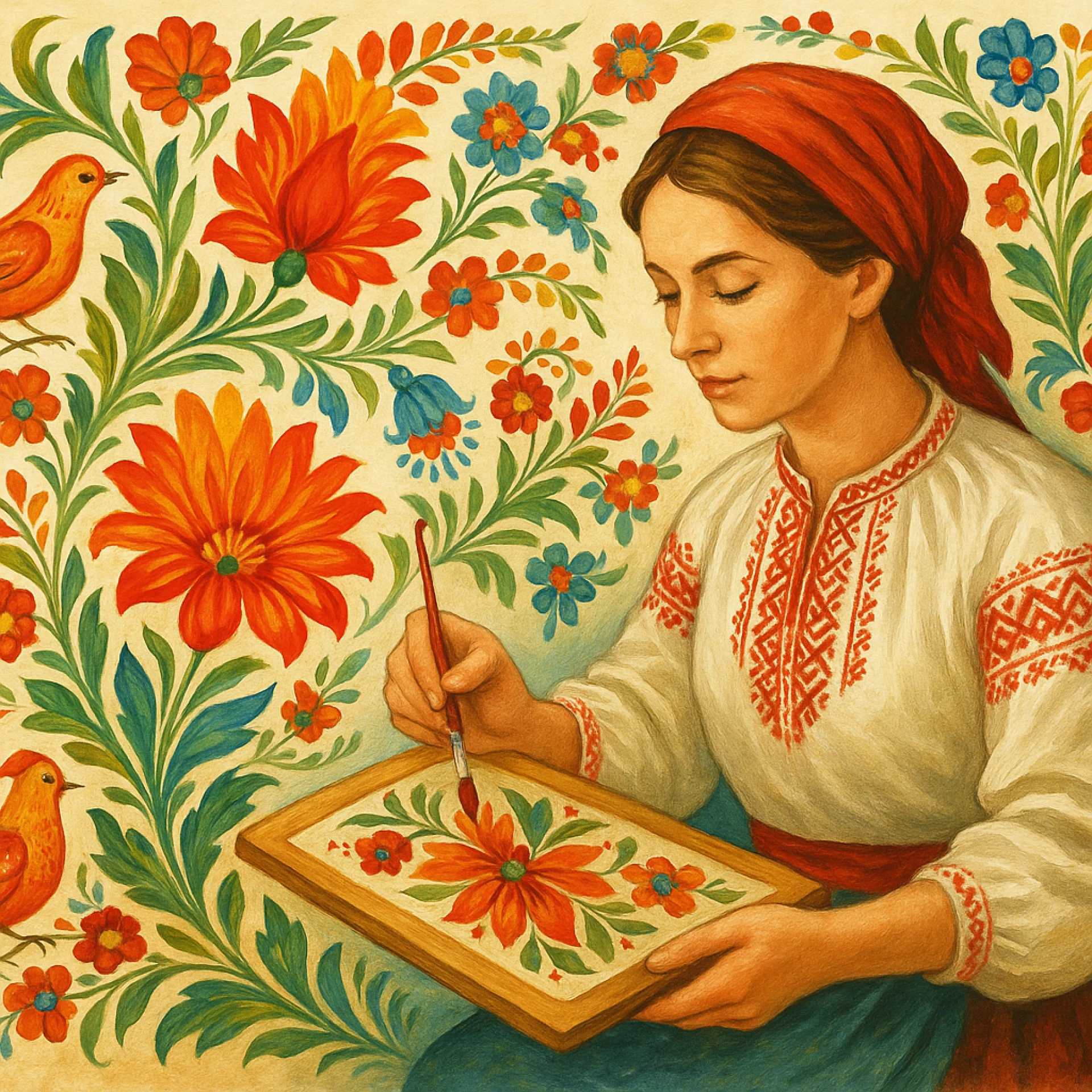 The history of Petrykivka painting dates back to the 18th century, when local women began decorating their homes with floral murals.