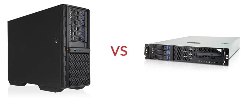 A rack server allows you to add another unit to the frame when new needs appear. You also share power strips and network paths across the stack.