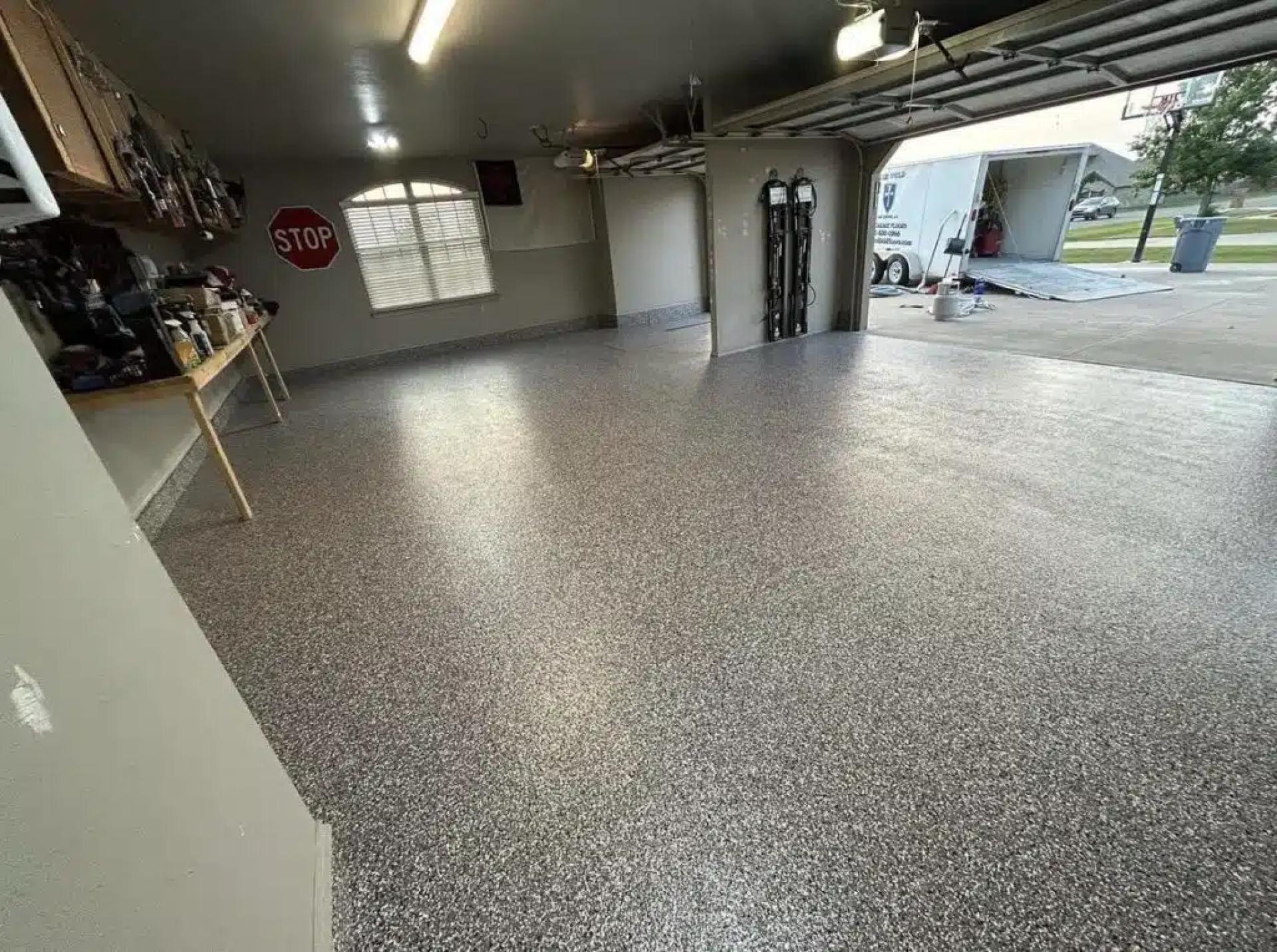 Upgrade your garage or business with durable concrete floor coatings in Norman, OK. Blue Shield Floor Coatings offers decorative flake floor colors and long-lasting protection for residential and commercial spaces.