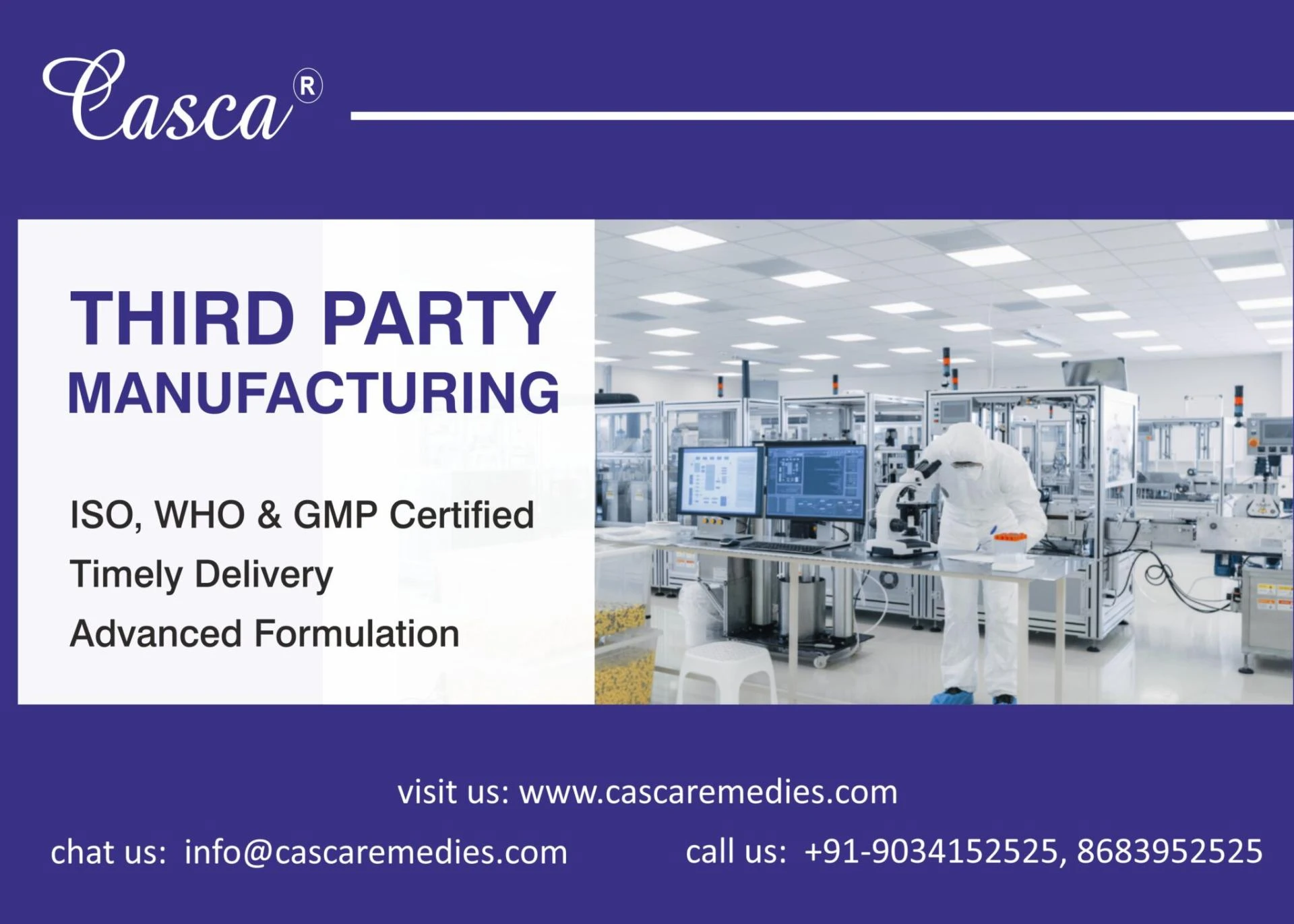 Casca Remedies Pvt Ltd is one of the top leading Third Party pharma Manufacturing Company in Ambala India.