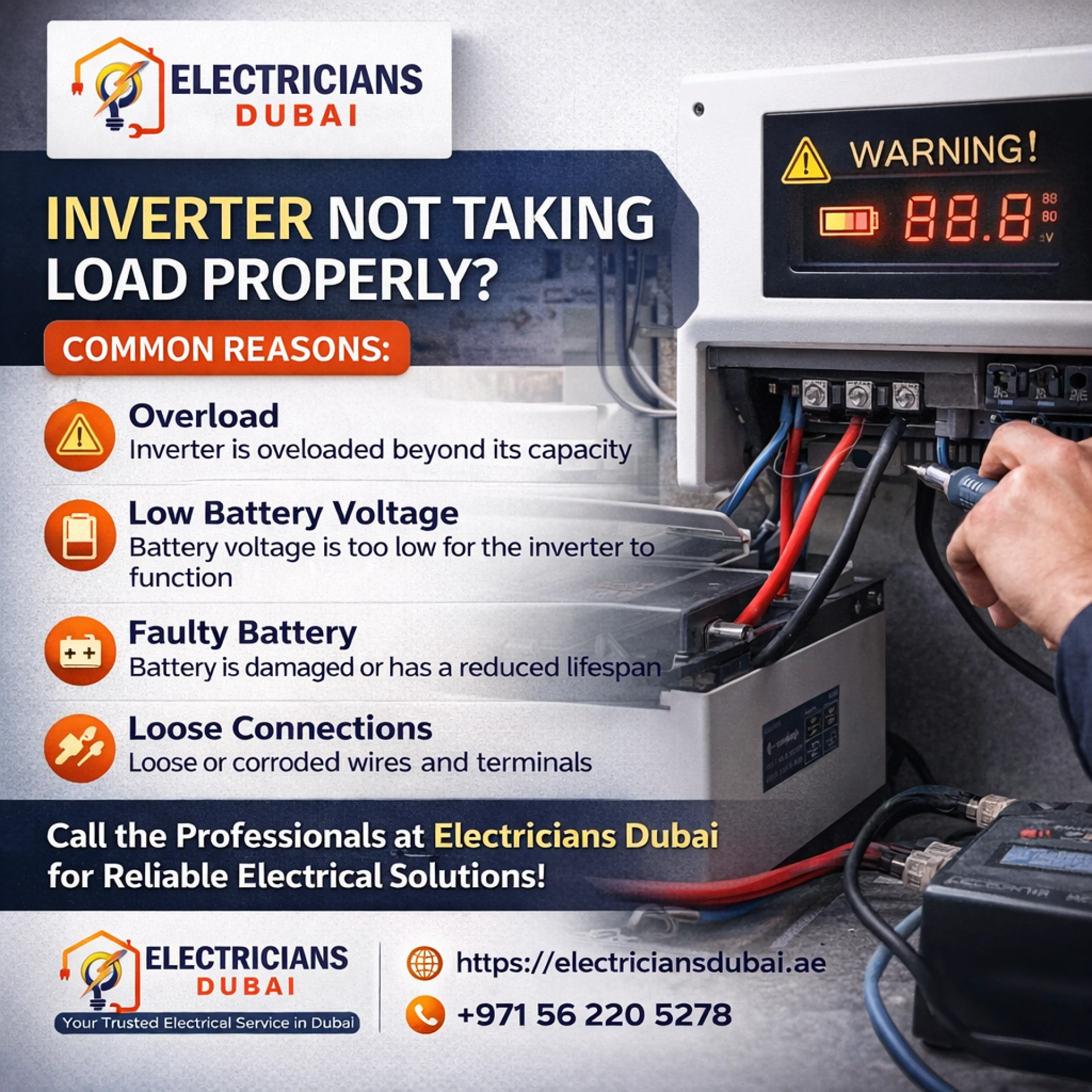 Electricians Dubai provides expert solutions for inverter load problems which they explain through their Electrician In Dubai specialists.