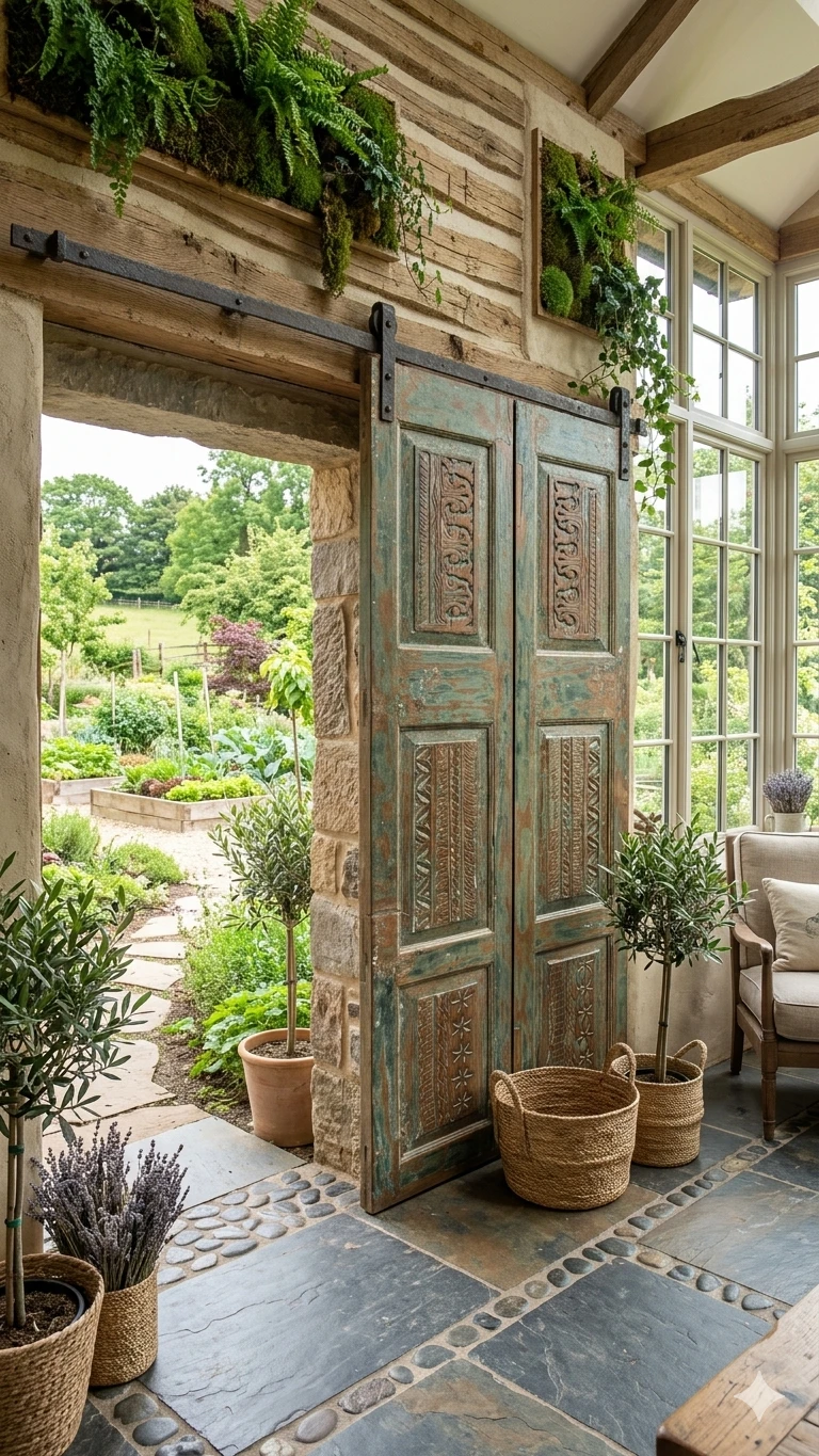 Home Improvement Organic Farmhouse Style with Antique Carved Doors