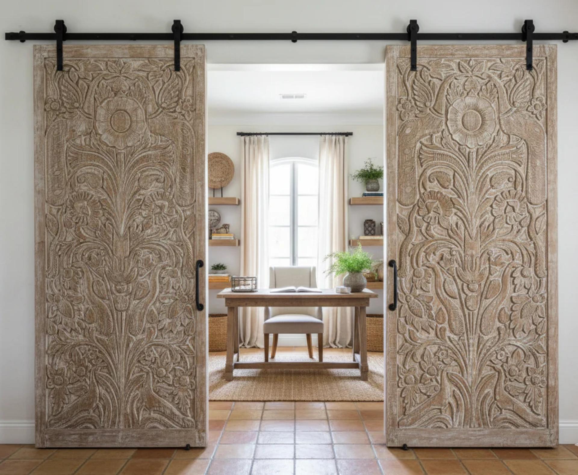 There's a quiet kind of drama in acarved Indian door. Its intricate patterns and weathered wood tell stories long before they arrive in your home, ye