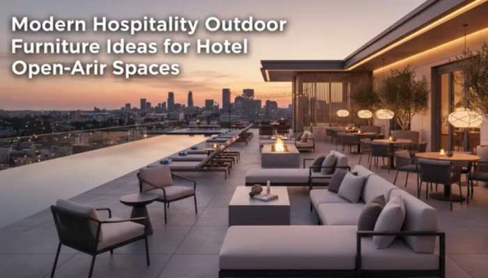 modern hospitality outdoor furniture ideas for hotels. Elevate open-air spaces with durable, stylish, and comfortable designs. Find top trends and material insights.