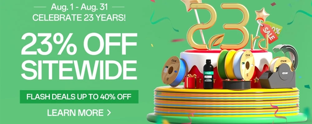 Celebrate eSUN’s 23rd Anniversary with exciting promotions and discounts at eSUN3DStore – your one-stop online shop for high-performance 3D printi