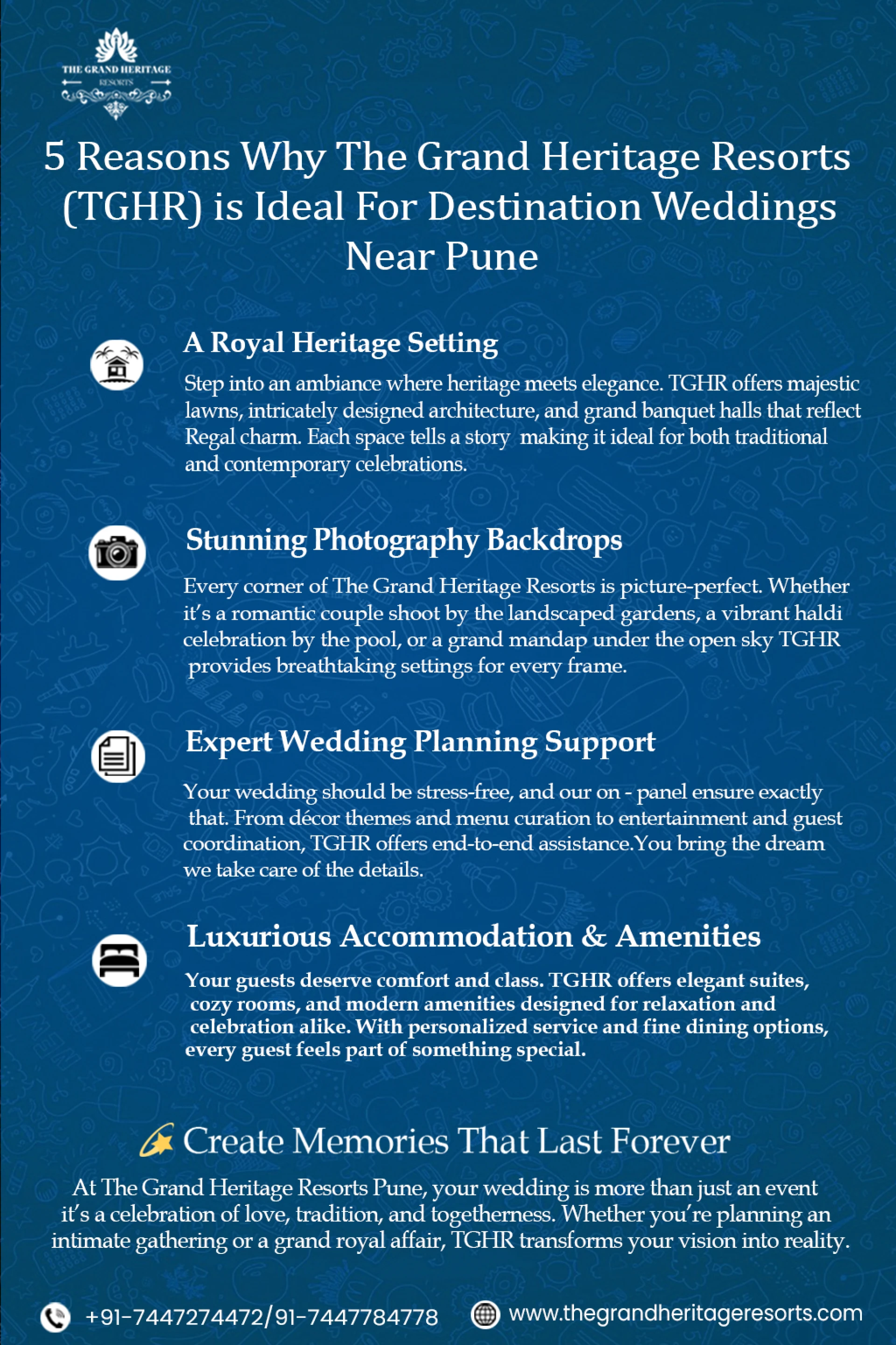 Discover Pune’s most luxurious venue for weddings, events, and celebrations — The Grand Heritage Resorts Pune. Stunning lawns, premium banquets, and royal ambience.