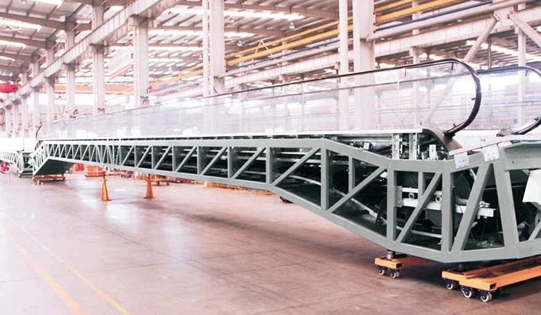 A horizontal moving walk escalator is a type of conveyor system that transports people horizontally from one point to another.