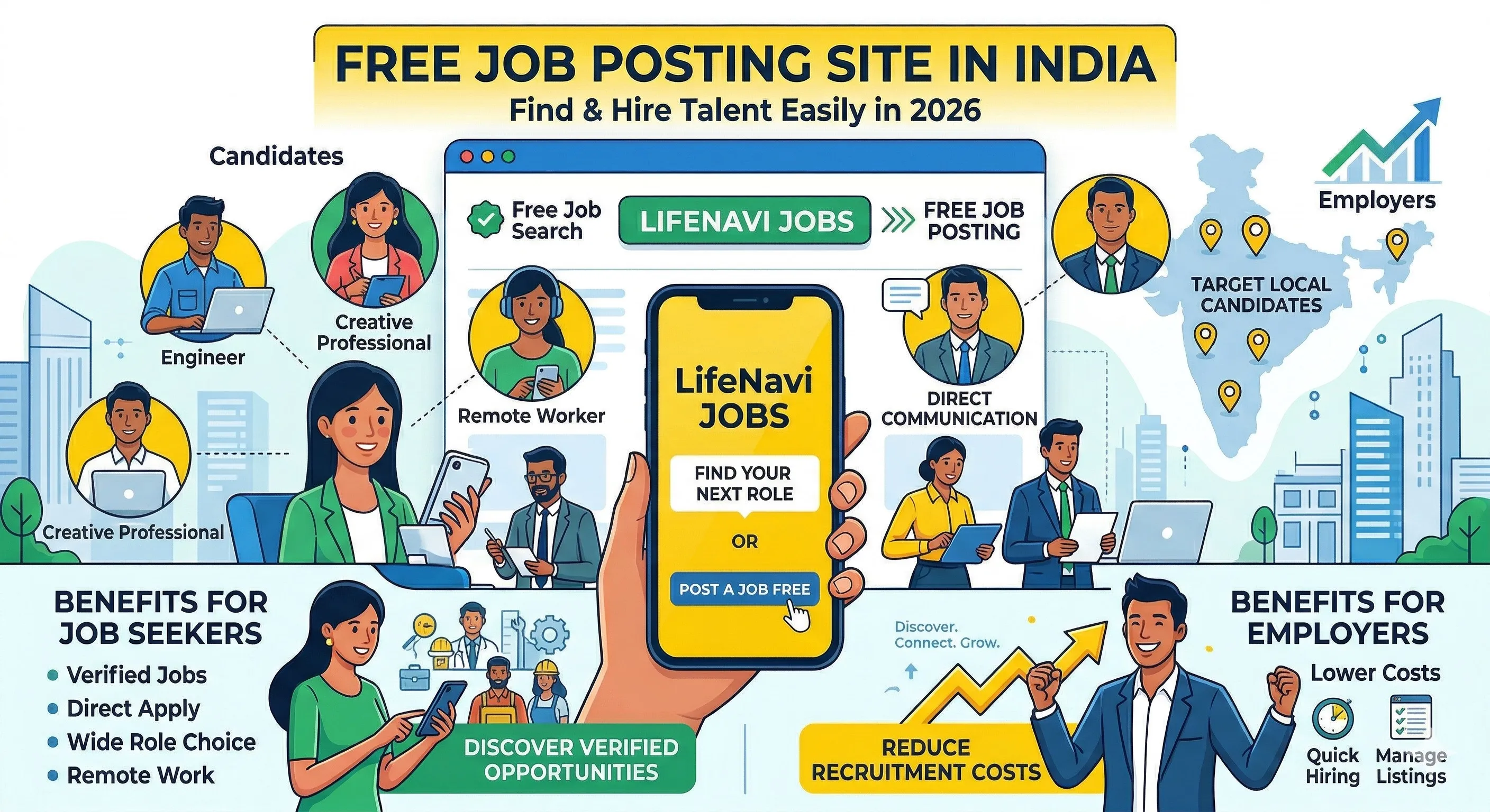 Looking for a free job posting site in India? This guide explains how to hire talent and find jobs easily using platforms like LifeNavi without extra cost.