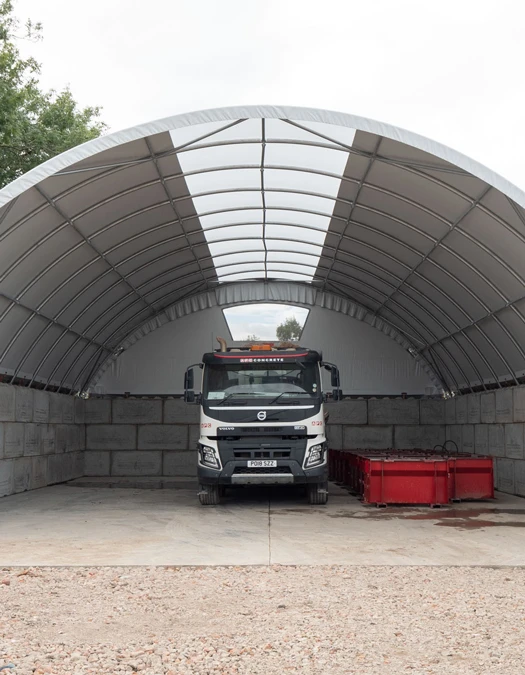 Opus™ to zadaszenie przemysłowe dla firm zajmujących się recyklingiem oraz dystrybutorów kruszyw, zapewniające osłonę dóbr