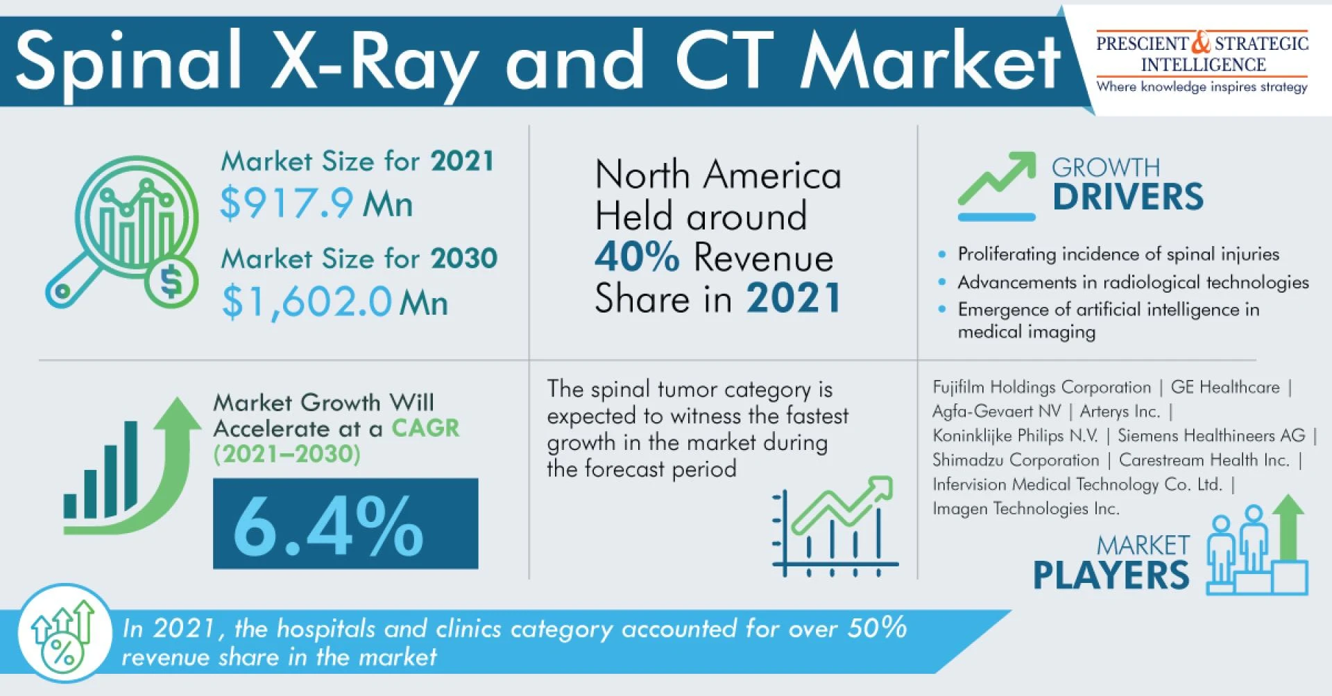 The revenue generated by the global spinal X-ray and CT market was $917.9 million in 2021, and it is expected to grow with a CAGR of 6.4% from 2021 to 2030.