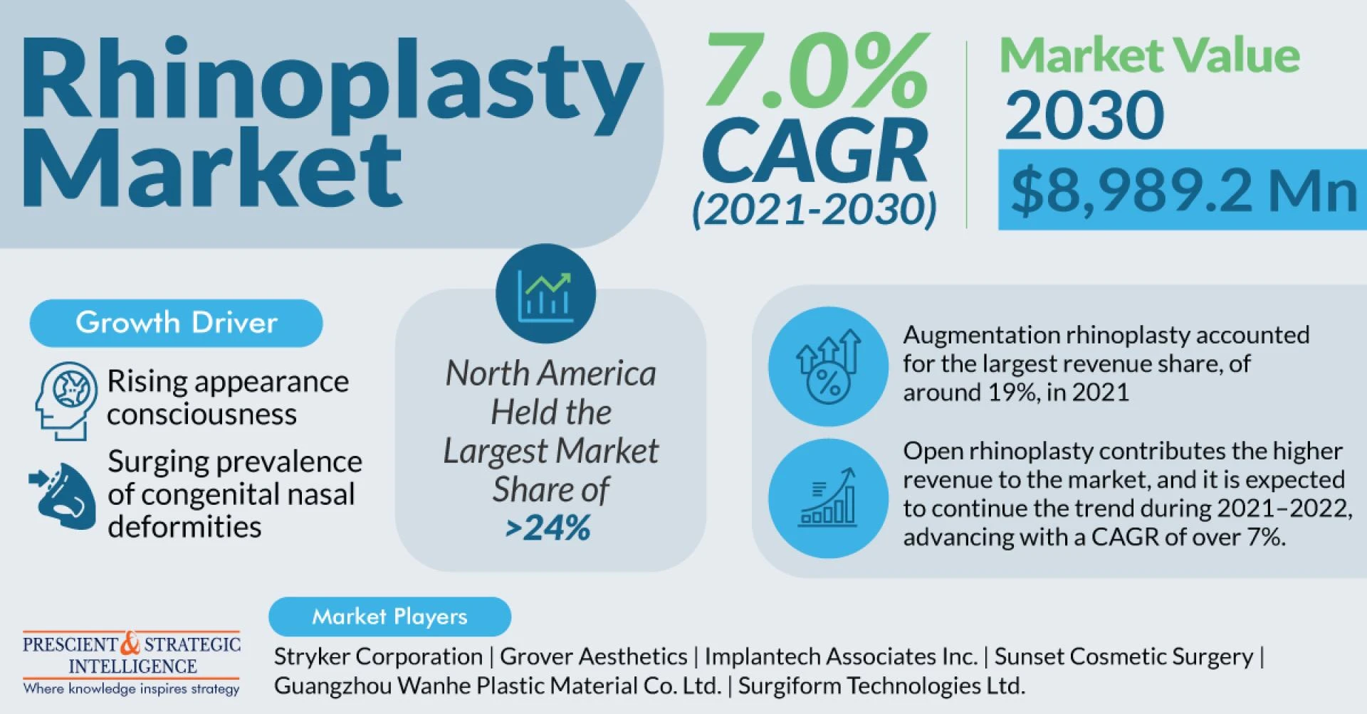 Rhinoplasty industry garners $4,881.2 million revenue in 2021, and it is projected to generate $8,989 million revenue in 2030, advancing at a rate of 7% in the coming future.