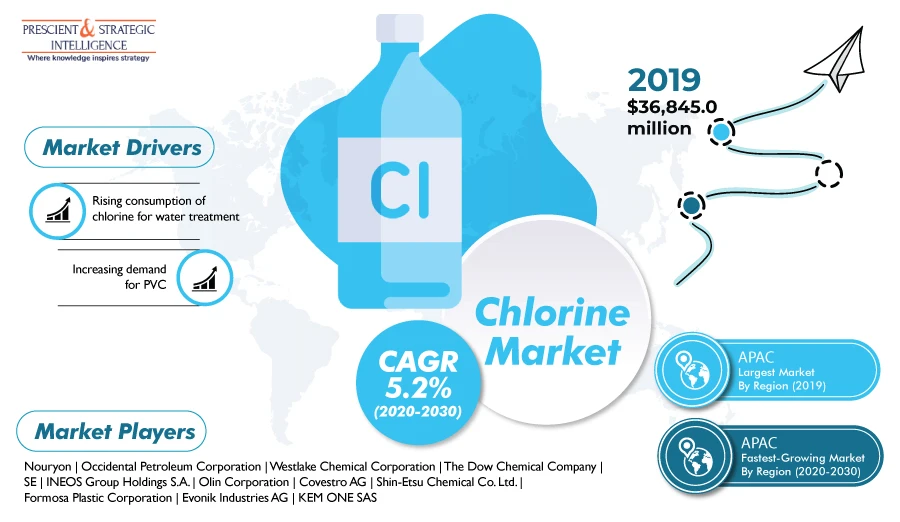 According to P&S Intelligence, the chlorine market revenue stood at $36,845.0 million in 2019, and it will reach $63,121.6 million by 2030.
