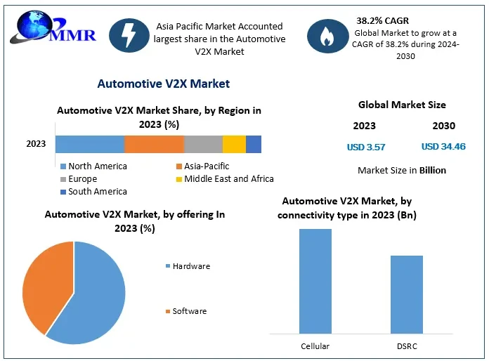 Automotive V2X Market accounted for USD 3.57 billion in 2023 and is expected to reach USD 34.46 billion by 2030 at a CAGR of 38.2 % during the forecast period.…