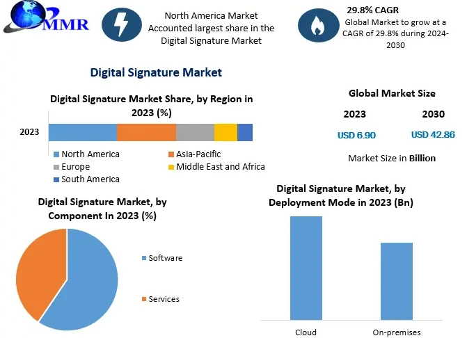 Digital Signature market size reached USD 6.90 billion in 2023 and is expected to reach USD 42.86 billion by 2030, growing at a CAGR of 29.8 % during the foreca…