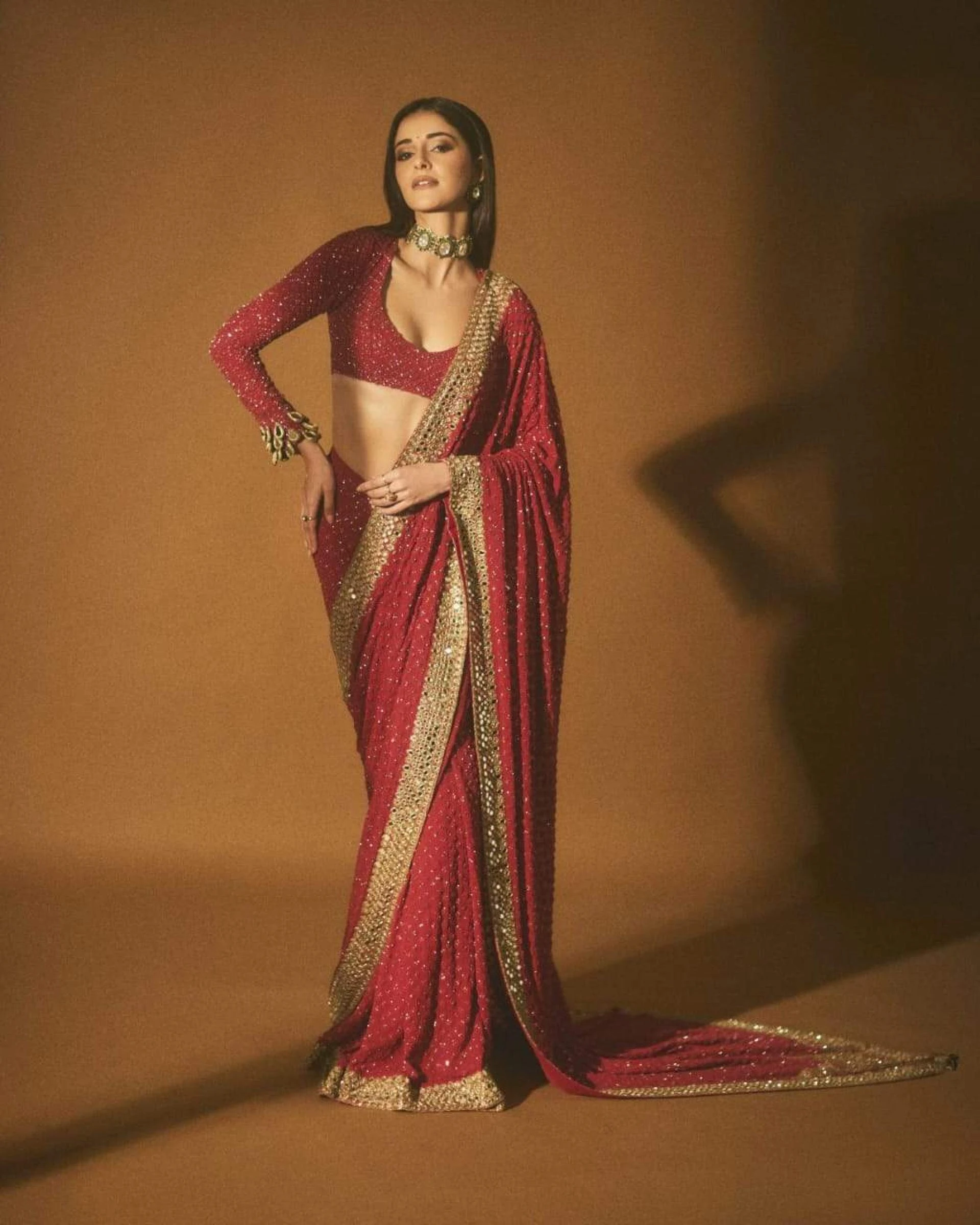 Stunning Red Saree Inspired by Ananya Pandey - Shop Now!