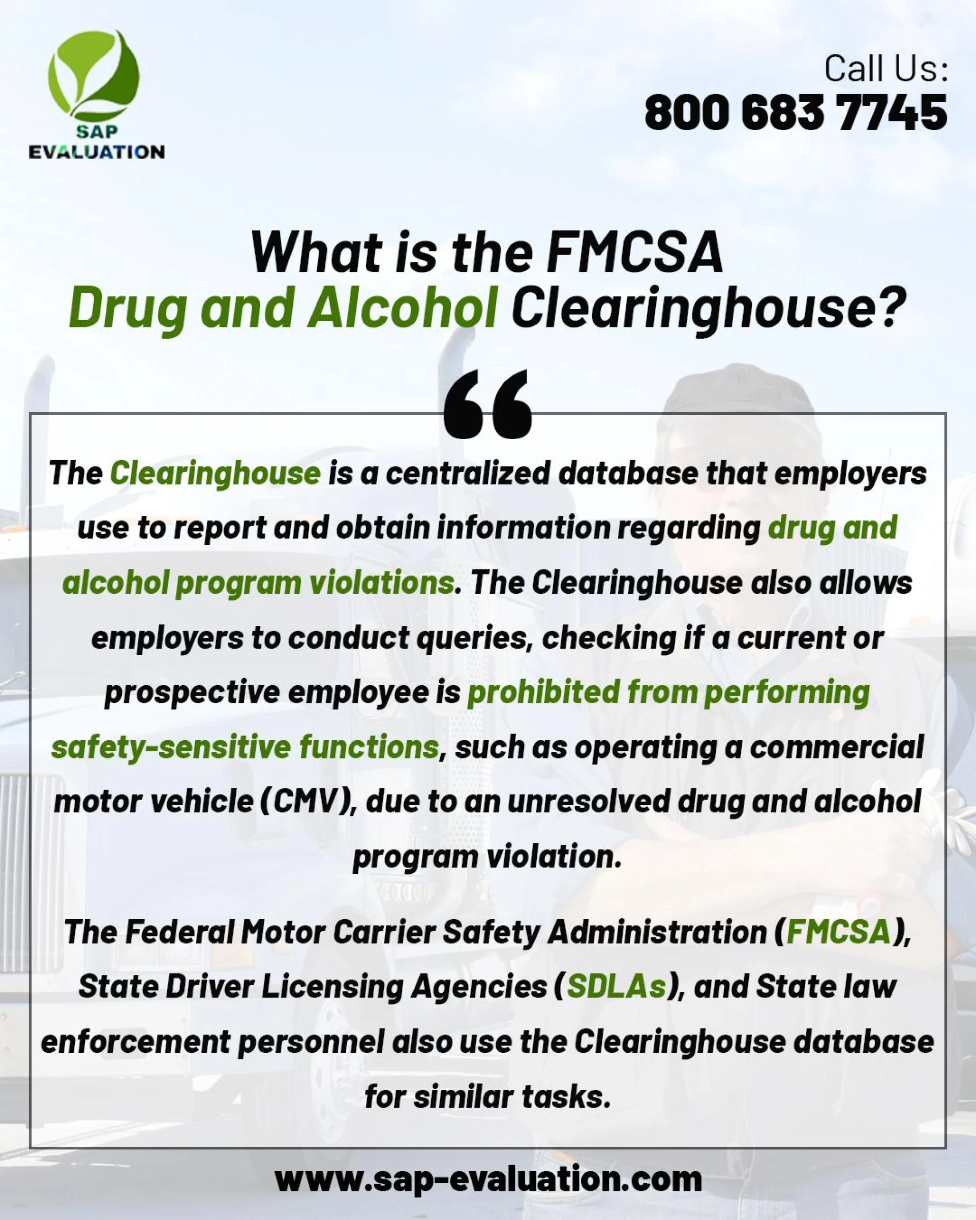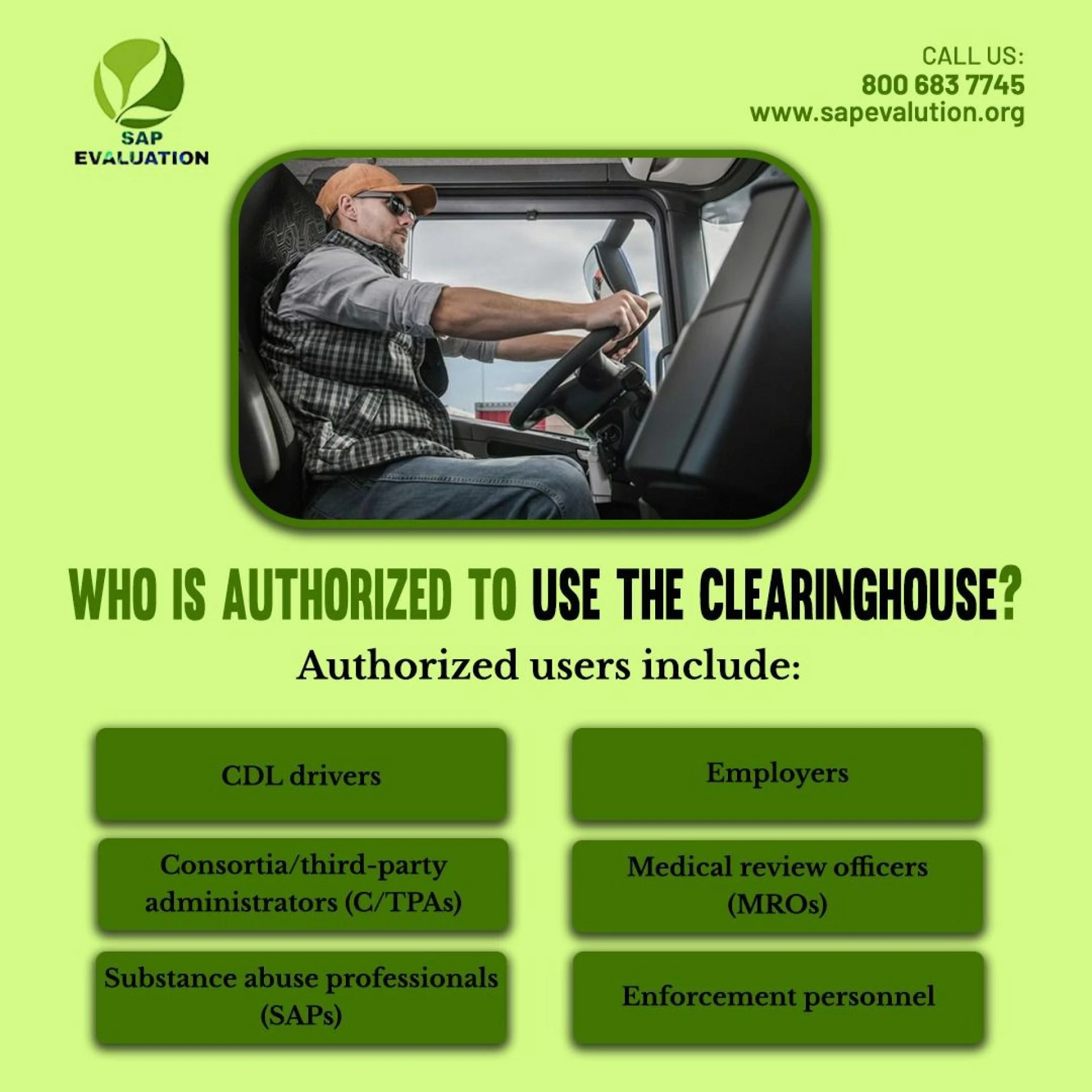 #DOT SAP Program near me | SAP Evaluation(s) Contact @ 800 683 7745