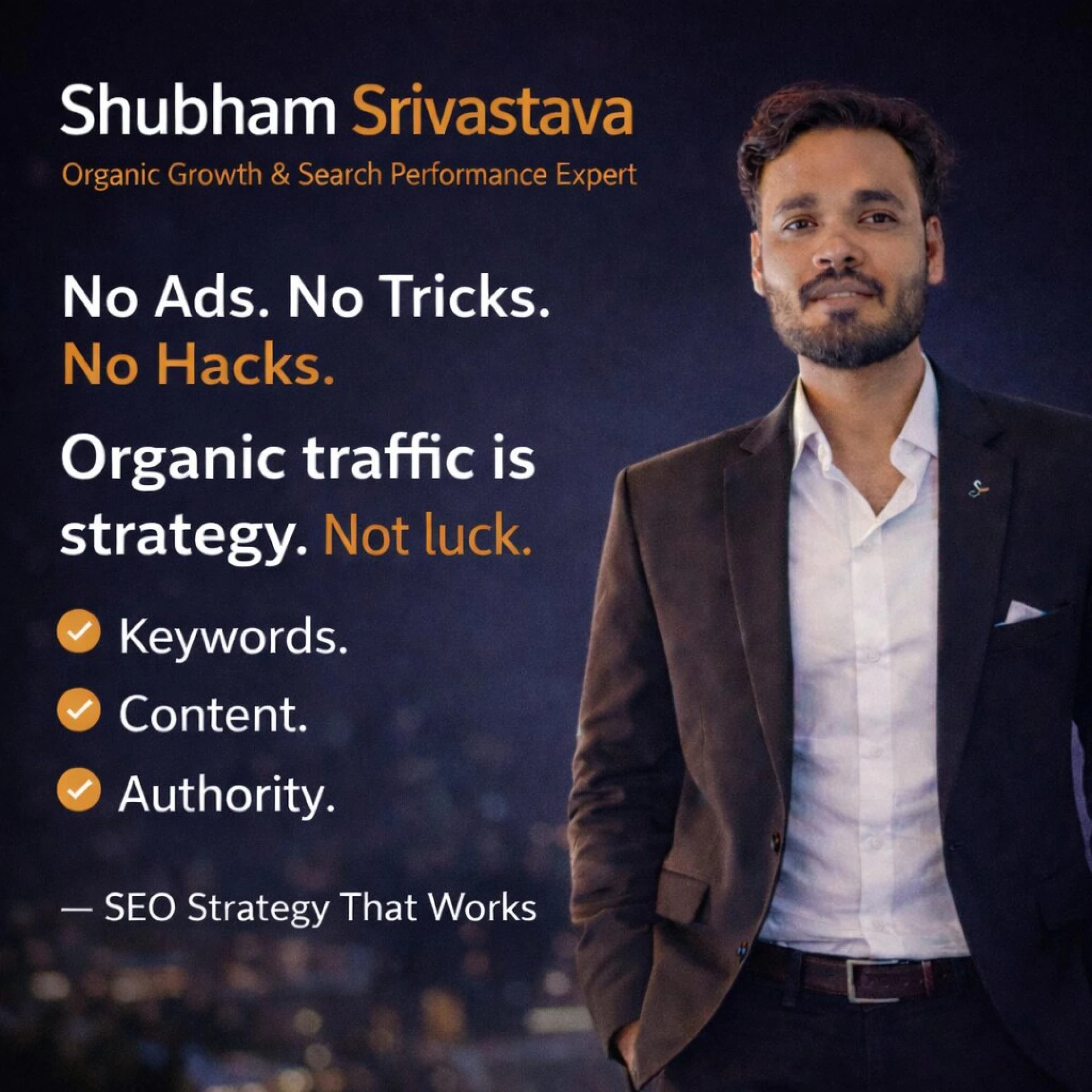 Shubham Srivastava is an SEO and digital marketing professional focused on driving organic growth through strategic keyword research, search visibility optimization, and long-term brand authority building. With a data-driven and performance-oriented approach, he helps businesses improve rankings, attract qualified traffic, and achieve sustainable digital success.