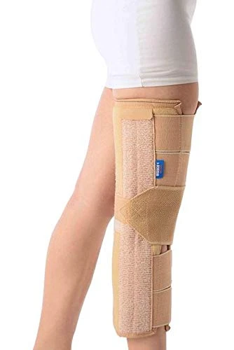 The knee is kept stable by removable devices referred to as knee immobilisers.