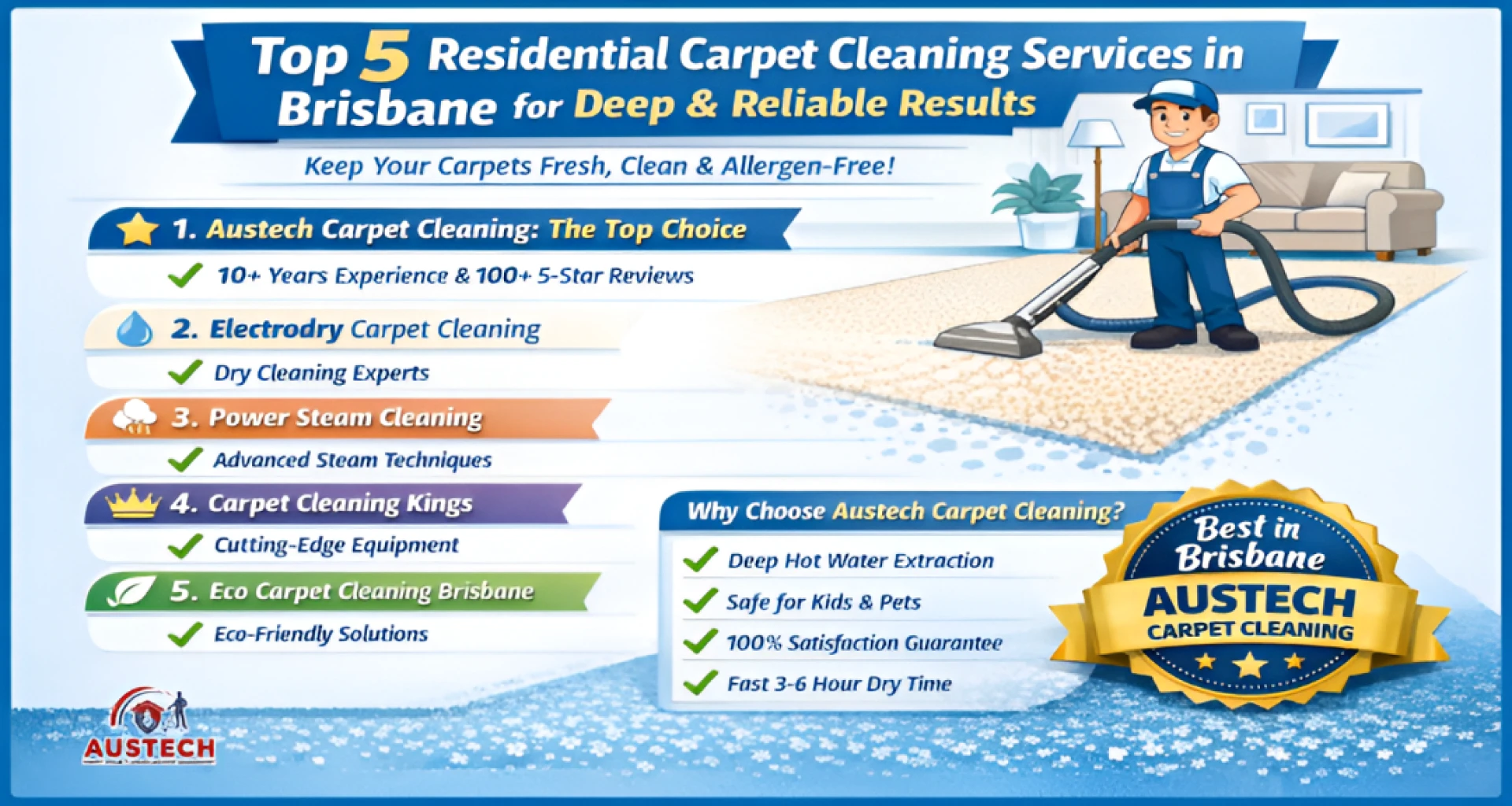 Brisbane homes deserve spotless carpets that stay fresh and hygienic year-round. These top services excel in residential carpet cleaning Brisbane, del