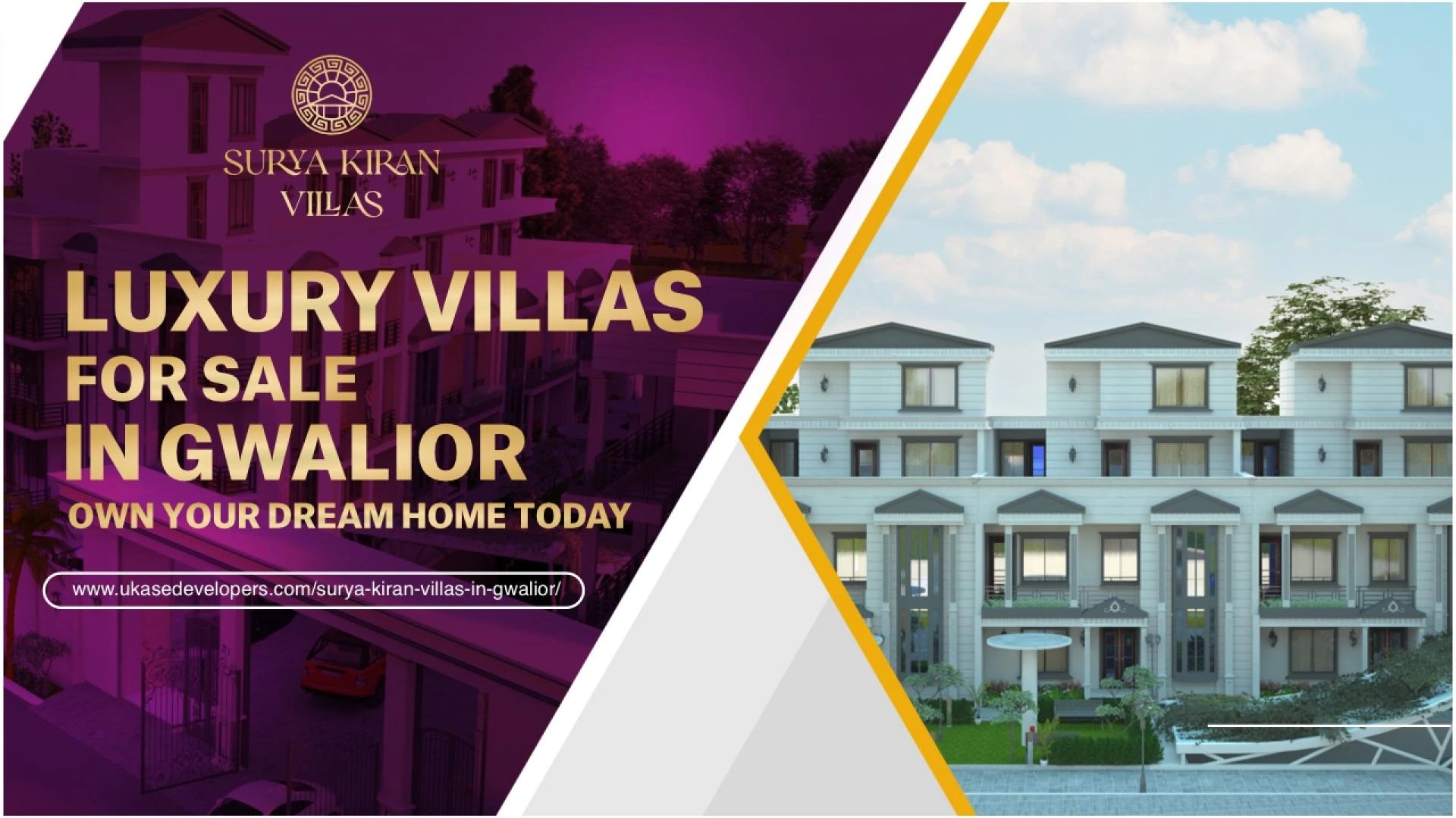 Surya Kiran Villas is a premier luxury villa township developed by Ukase Developers, one of the most trusted home and township builders with 20 years of expertise. Offering a lifestyle of unparalleled elegance and comfort, Surya Kiran Villas presents serenity amidst the scenic landscapes of Gwalior, Madhya Pradesh. Each villa is designed with individual amenities, including a mini pool, personal lift, private gymnasium, 24x7 security, and power backup. Enjoy garden-facing villas with complementary interior design and wooden flooring. Our commitment to quality and attention to detail ensures that every home provides the perfect blend of modern living and tranquility. Discover your dream luxury villa home at Surya Kiran Villas.