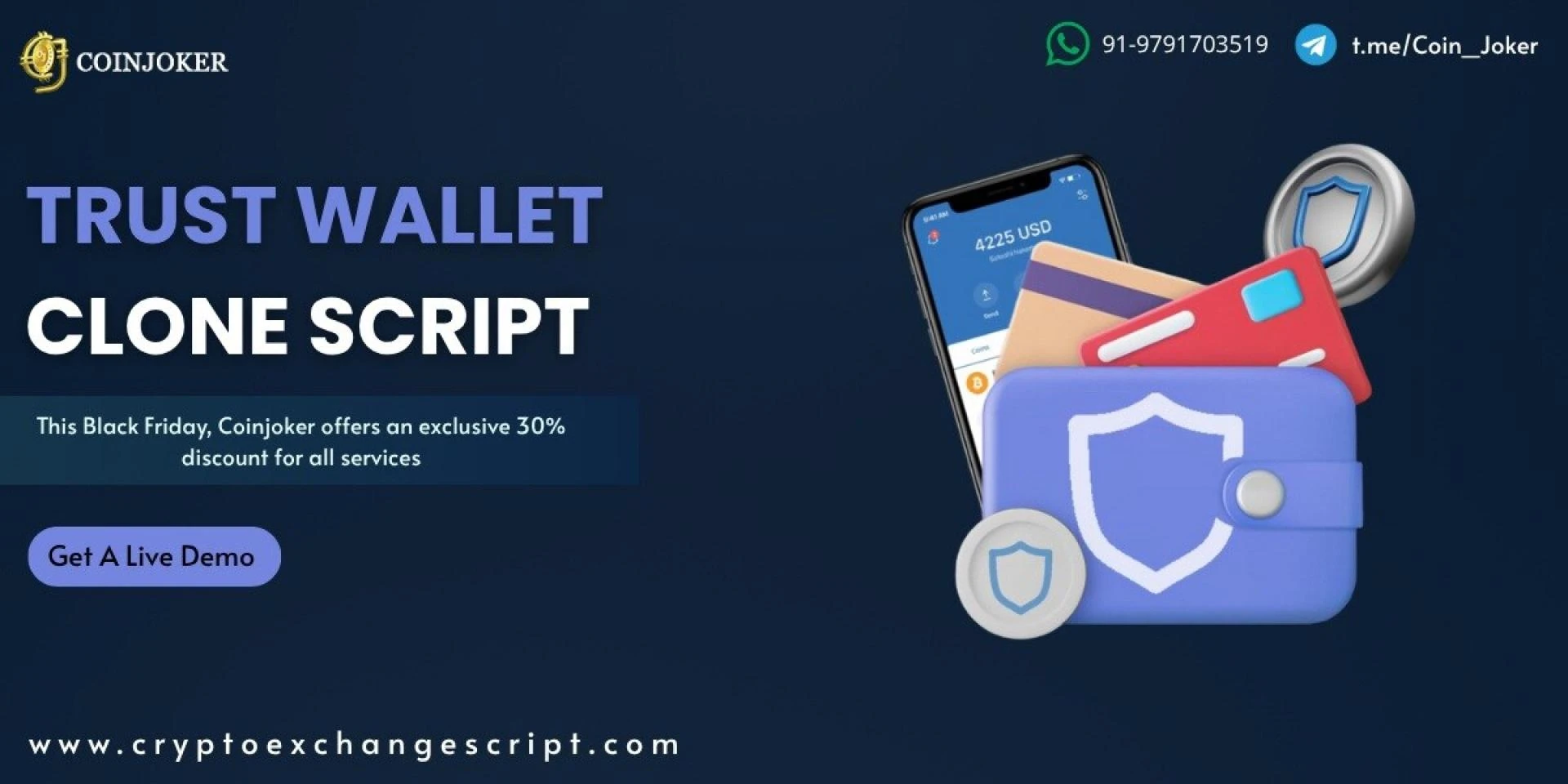 Customized Trust Wallet clone script is created by the best trust wallet clone app development company. Coinjoker's trust wallet clone software is built by ethereum wallet to store your favourite BEP2, ERC20 and ERC721, tokens.