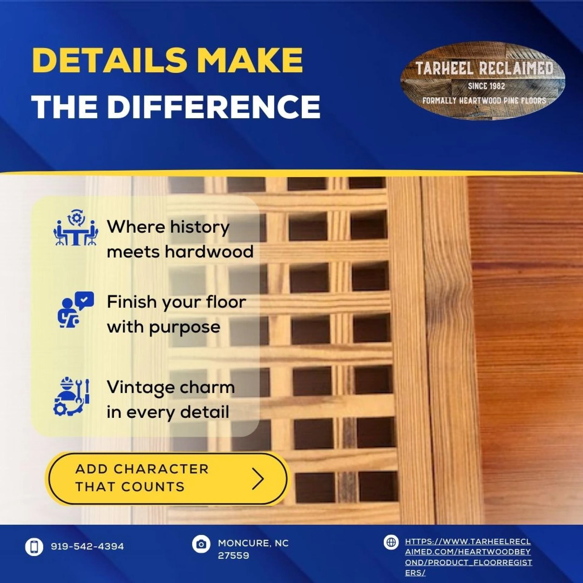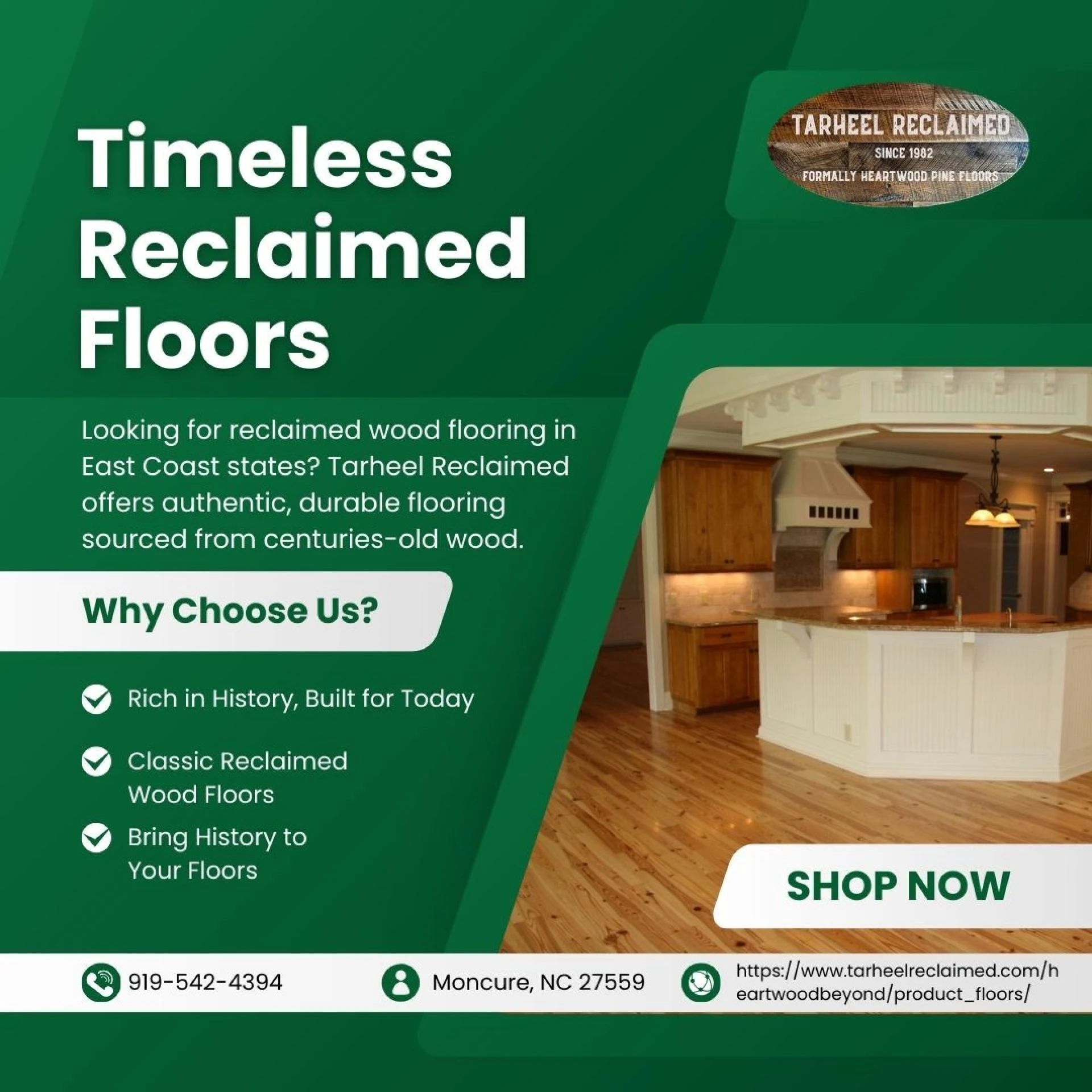 Tarheel Reclaimed, based in Moncure, NC 27559, has been preserving the legacy of American timber through its premium selection of heartwood floors eas