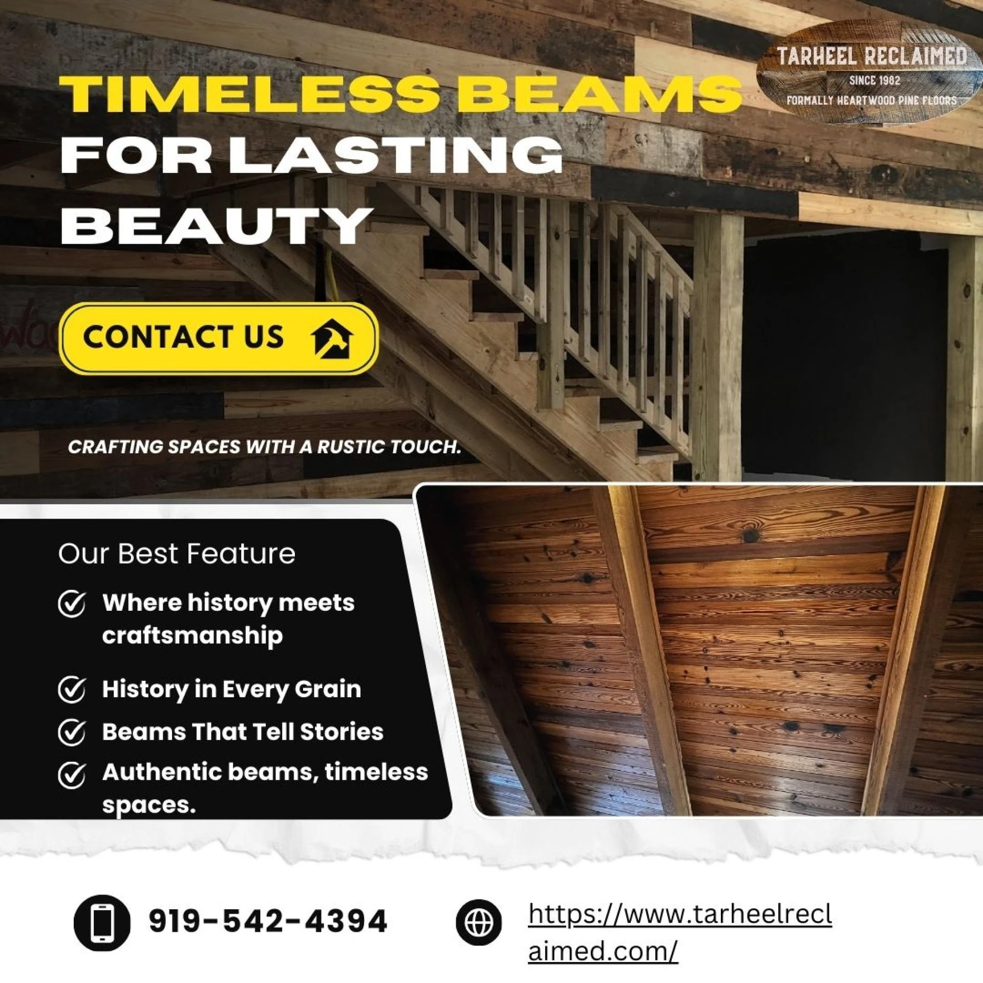 Bring character and heritage into your home or commercial space with authentic reclaimed wood features from Tarheel Reclaimed, located in Moncure, NC.
