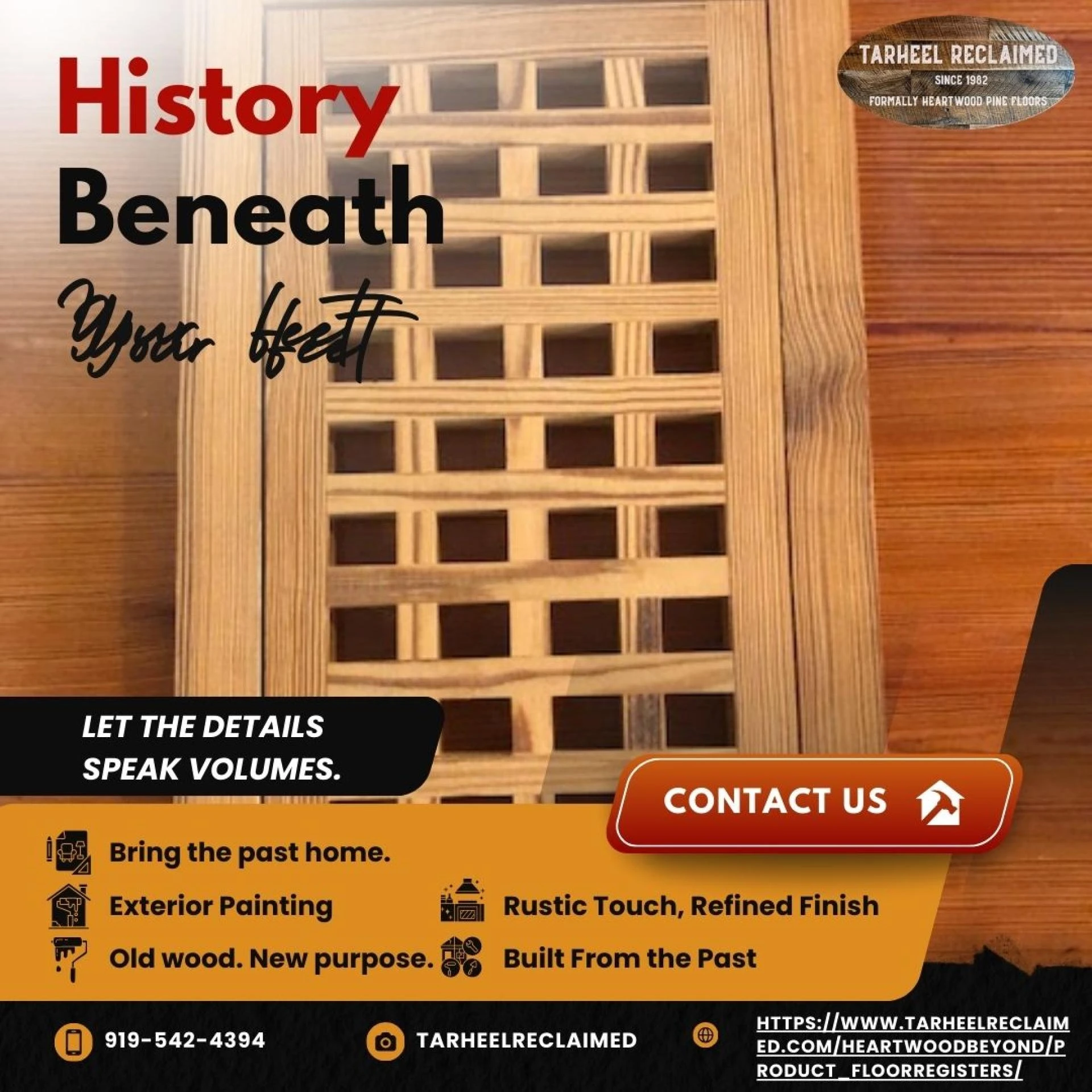Tarheel Reclaimed, located in Moncure, NC 27559, is rooted in a tradition that respects the strength and story of reclaimed wood. Previously known as