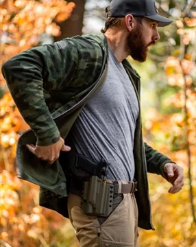 There's a difference between concealed carrying throughout your daily routine and bringing your gun on a three-hour drive, setting up camp, and putting in miles on the trail. A camping trip tests every aspect of your setup. Plus, there are so many variables to consider, like long stretches in your truck, constant bending and lifting, sweat, layers, and more. That's why you need versatile, lightweight Kydex holsters.