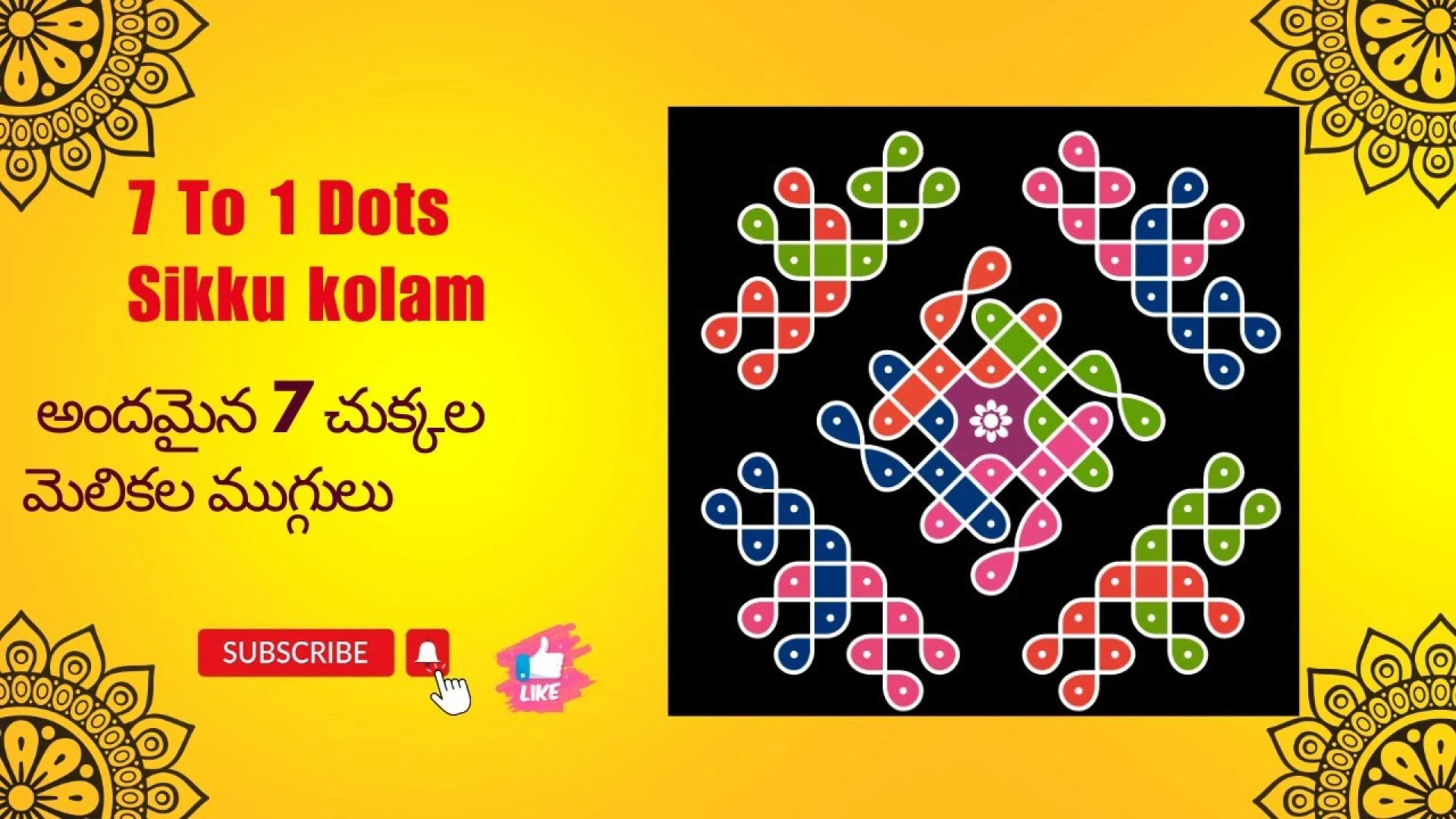 7 Dots Melikala Muggulu and Sikku Kolam With 7 Dots/Easy Rangoli Designs/simple Kolam