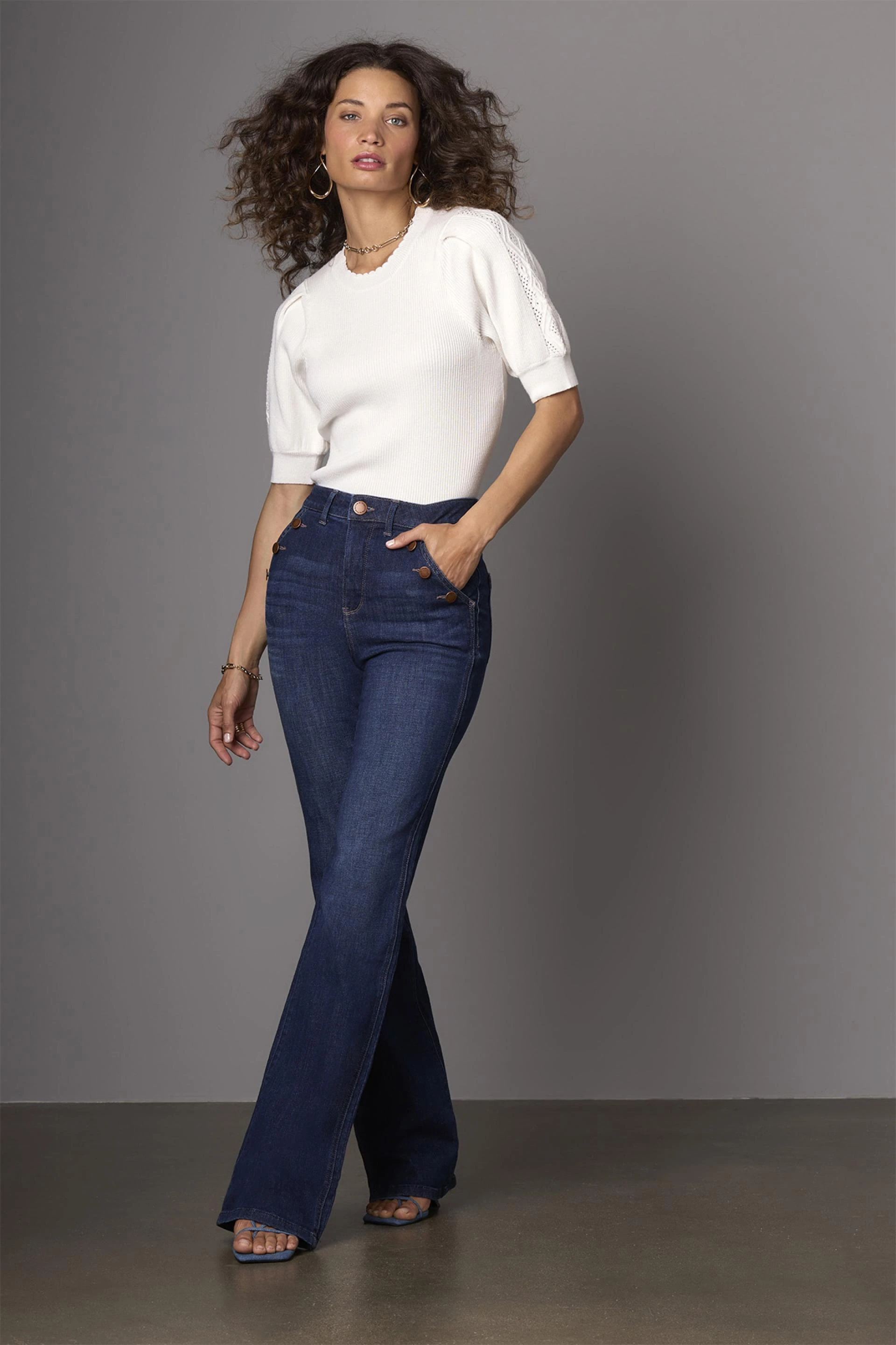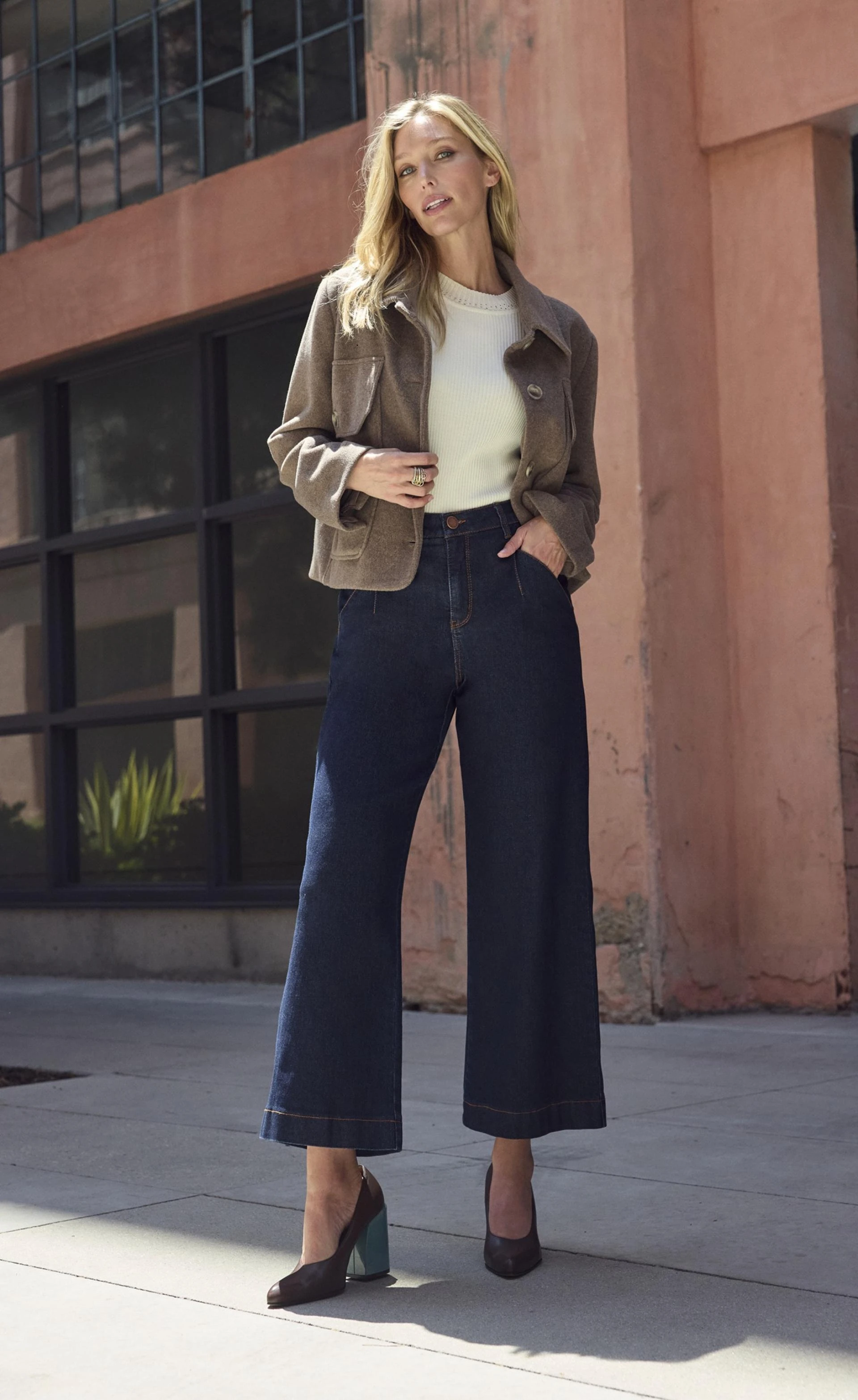 For the petite ladies: Don’t shy away from jeans with volume. Whether cropped or not, wide leg styles work well for petites when designed and constructed for petite sizes. High rise petite wide jeans that fit perfectly give balance and shape, especially when worn with a fitted or tucked-in top. This silhouette is a warm-weather favorite, offering breathability and comfort without sacrificing polish.