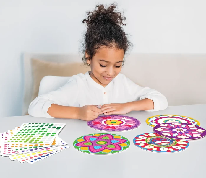 - Sticker Mandala Art Kit: Children explore patterns, symmetry, and patience—ideal for engaging hands and minds in a colorful, festive activity.