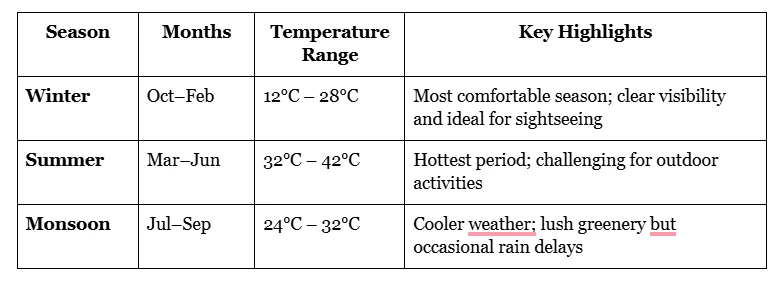 - Cool, pleasant weather ideal for full-day sightseeing