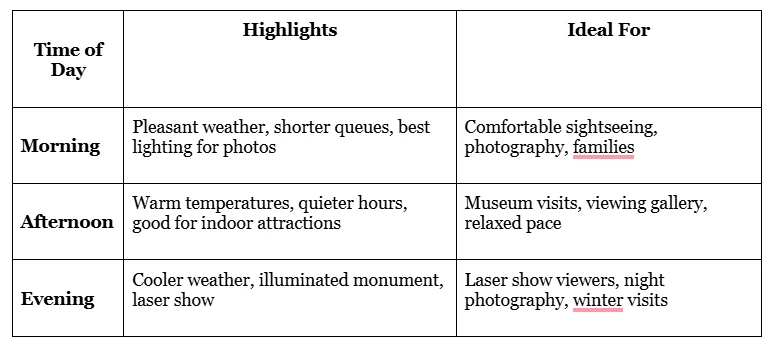 Suitable for visitors who want to focus only on the main monument, viewing gallery, and laser show.It is doable but difficult, particularly during the busiest time of year.