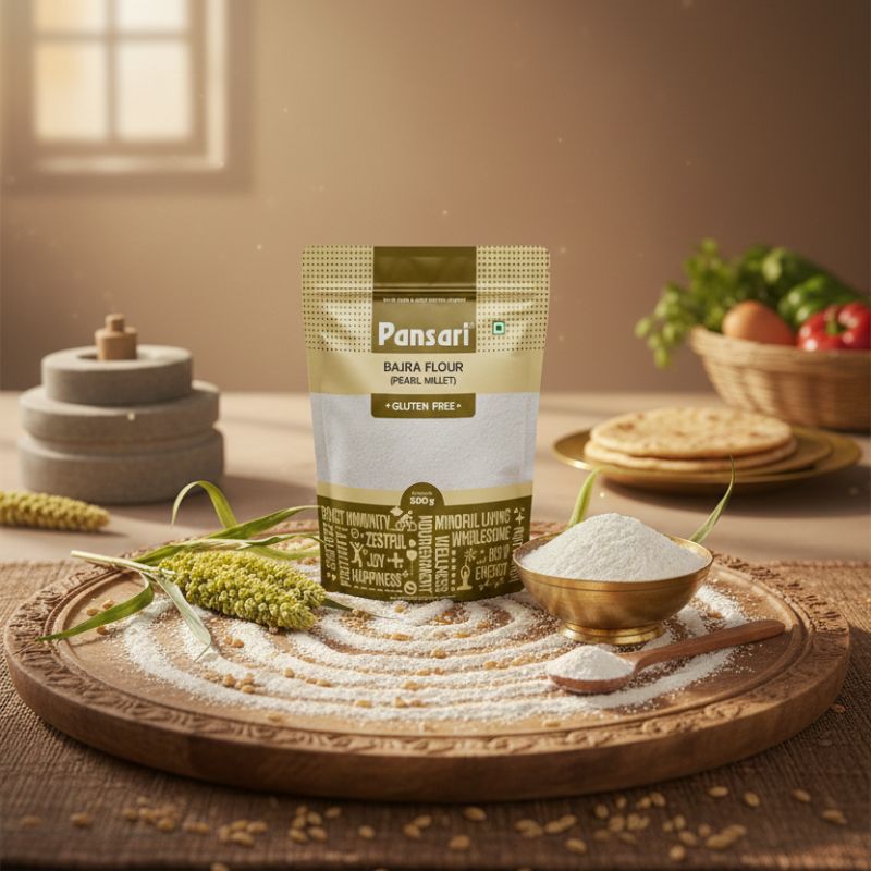 Bajra flour is perfect during winter season. It gives warmth to the body and boosts stamina. Bajra contains iron, magnesium, and fiber that support blood health and digestion. Bajra roti with ghee and jaggery is a traditional meal loved across villages and cities.