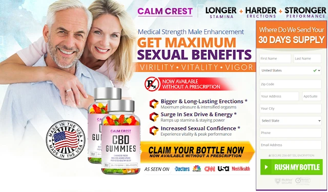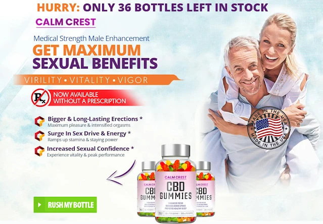 Calm Crest Male Enhancement CBD Gummies (USA) - Each man needs dependable and persevering through execution. Unfortunately, the developing framework antagonistically influences their sexual thriving, leaving them truly low and frail. As needs be, people become genuinely and truly exhausted to perform at their best, and they search for strong and solid supplements to restore their sexual flourishing. Calm Crest CBD Gummies for ED are all-typical and serious oral chewy confections that are planned to additionally foster room execution and sexual thriving.
