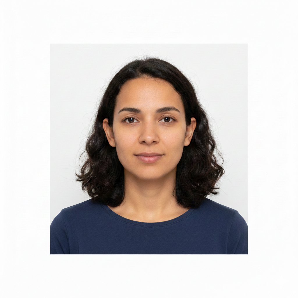- Face: Head must be centered, looking directly at the camera with a neutral expression.