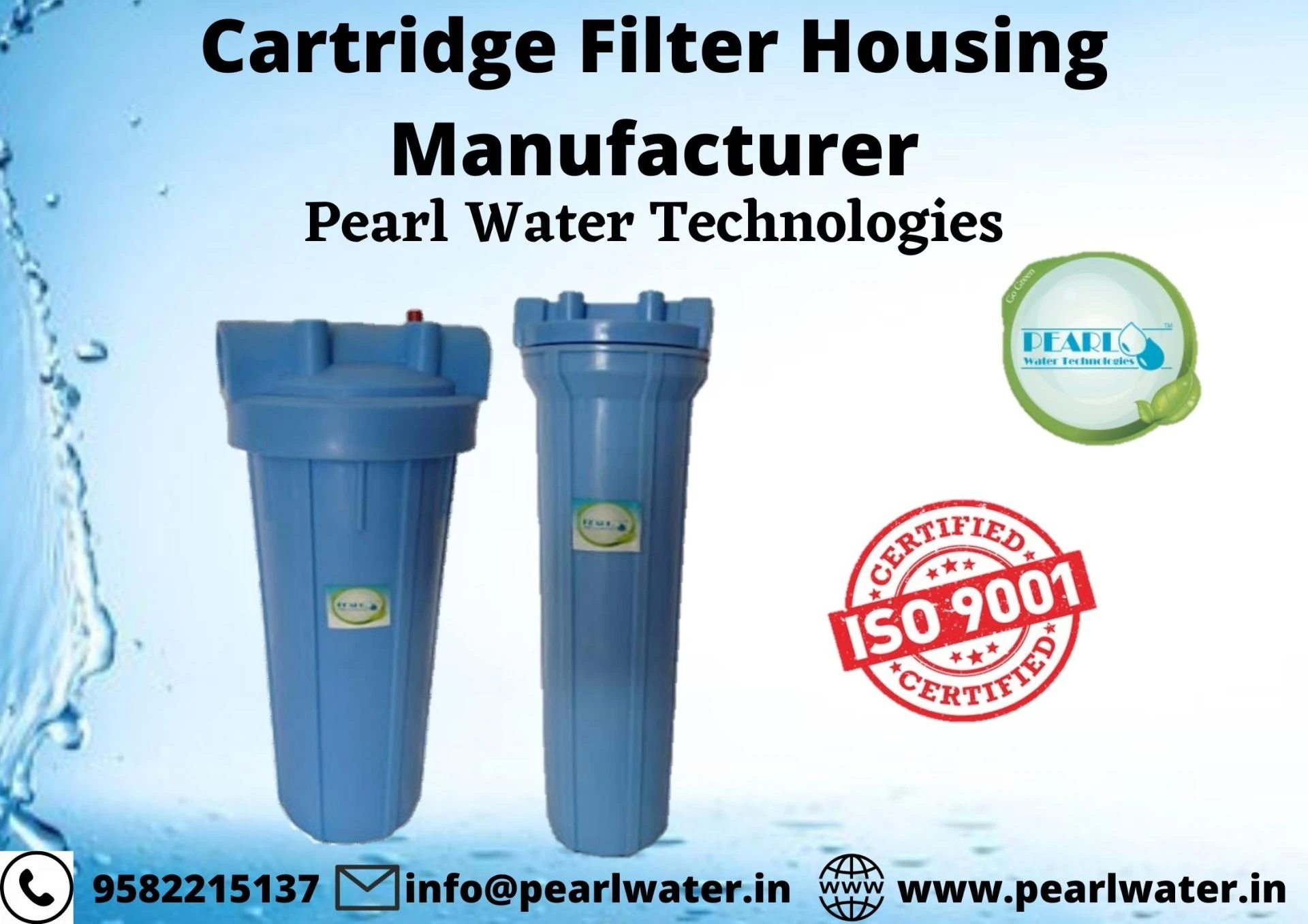 Dyes and IntermediatesRO Pre filtrationWater TreatmentPharmaceuticalsBorewell waterChemicalsFood and Diary BeveragesPearl Water is providing you with ISO-certified Cartridge filter housing. Check our website for details. If you have any queries, then feel free to call our expert at 9582215137.