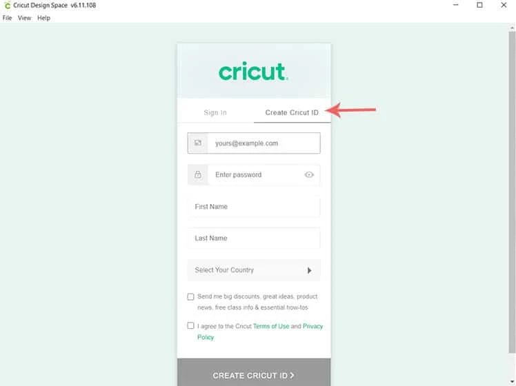 - After that, continue with the steps to create and sign in to your Cricut ID.