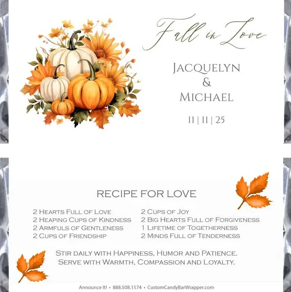You may make matching patterns for your candy bar wrappers if you're organizing a holiday event and a wedding at the same time or if you're combining the two. This helps your invitations, table settings, and party favors all look the same.