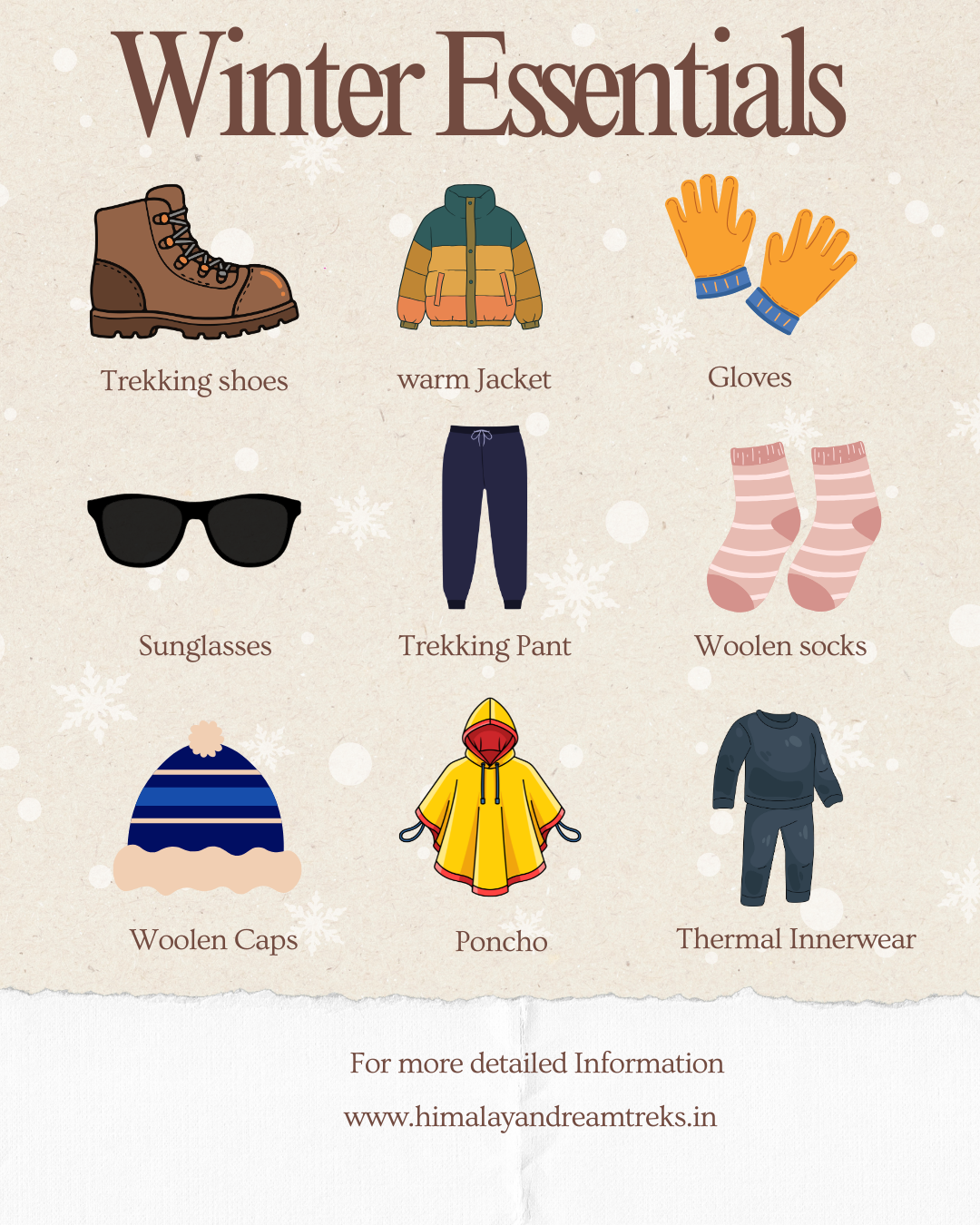 Carrying proper winter clothing ensures safety and comfort throughout the trek.