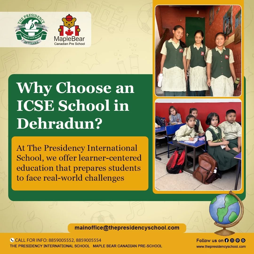 Schools like The Presidency International School represent the strengths of ICSE education in Dehradun, offering students the tools they need to succeed academically and grow into confident, capable individuals