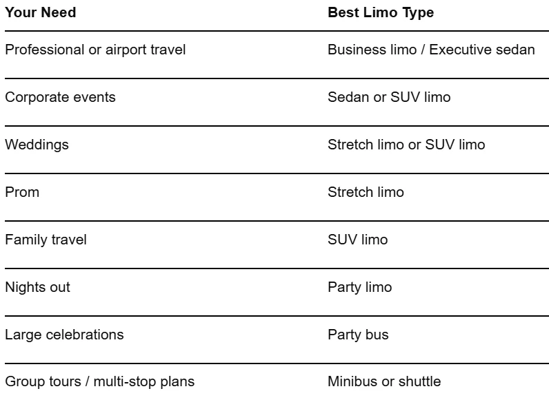 The Ultimate Guide to Limo Types: Which One Do You Actually Need?